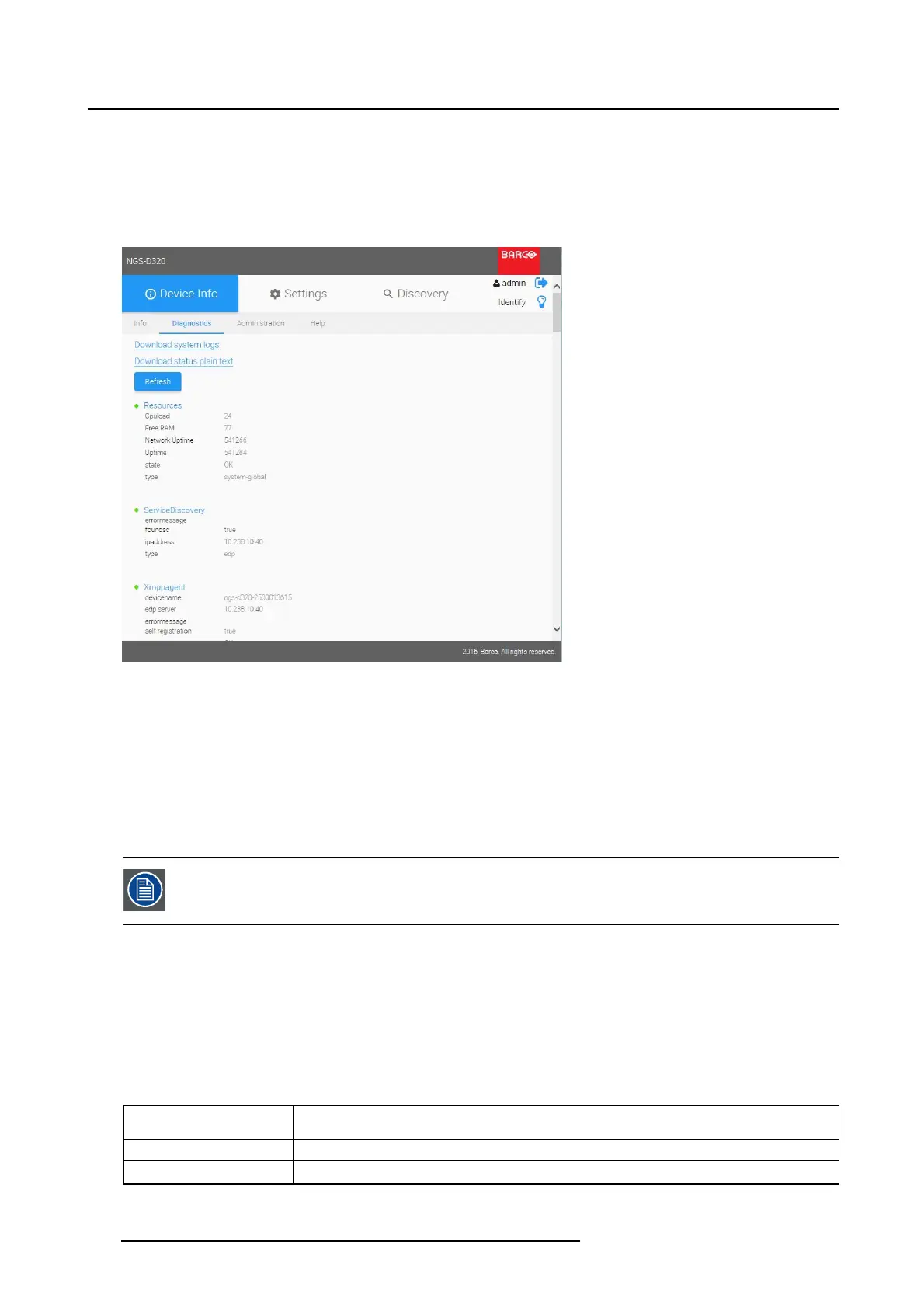 log can be useful for troubleshooting, or can be requested by Barco personnel during support.