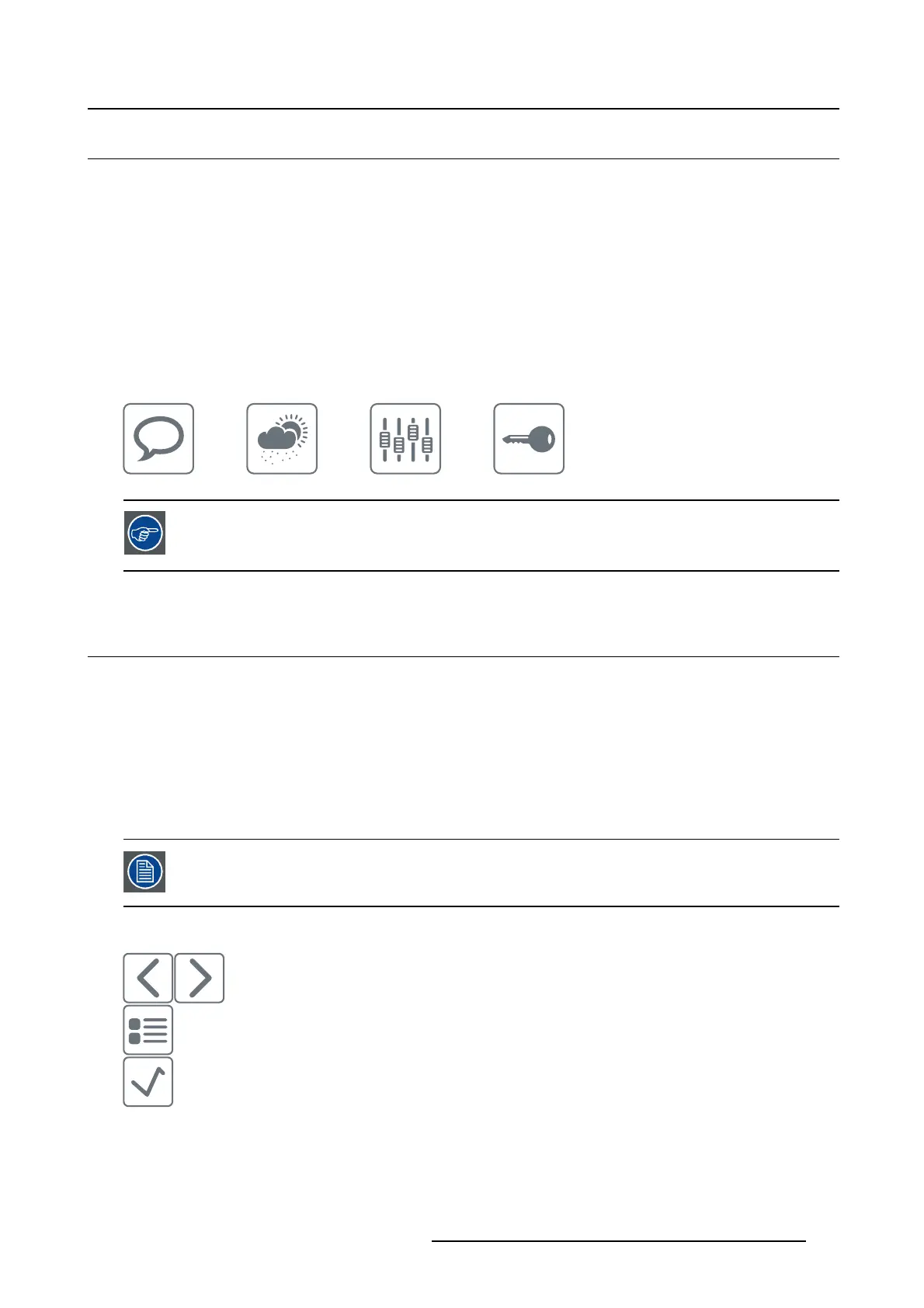 • Use the left/right keys to move through the (sub)menus, change values or make selections.