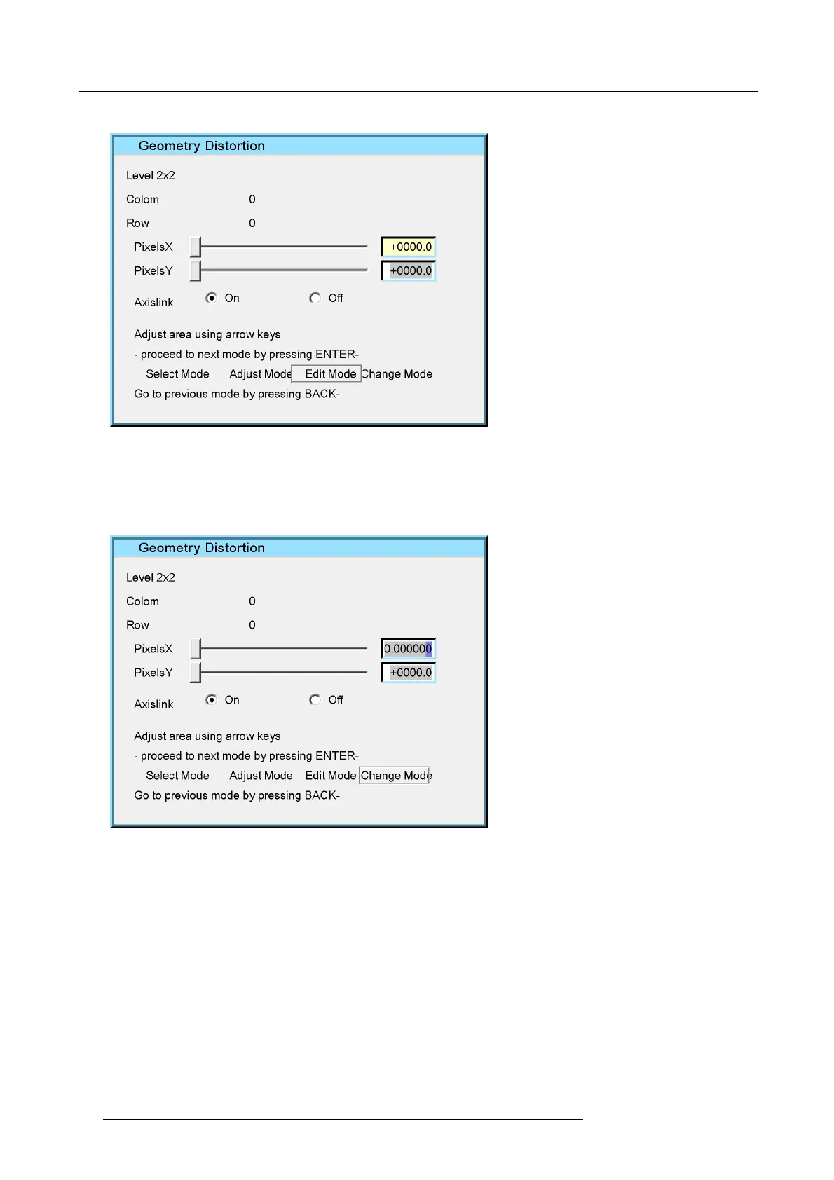 2. Use ↑ and ↓ to select the PixelsX edit box