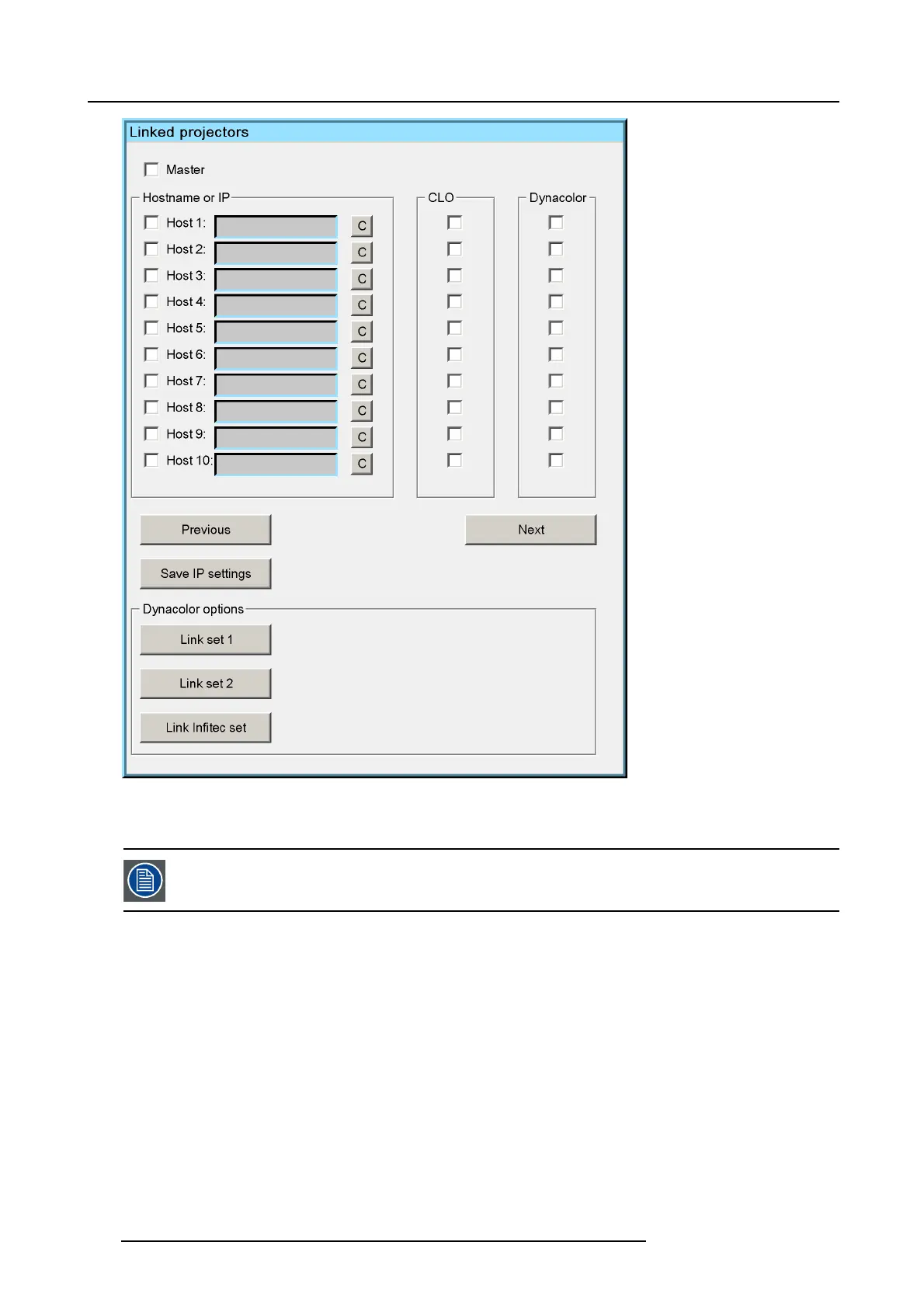 Link Set can only be performed if the linked CLO has been enabled, see Linked Projectors.