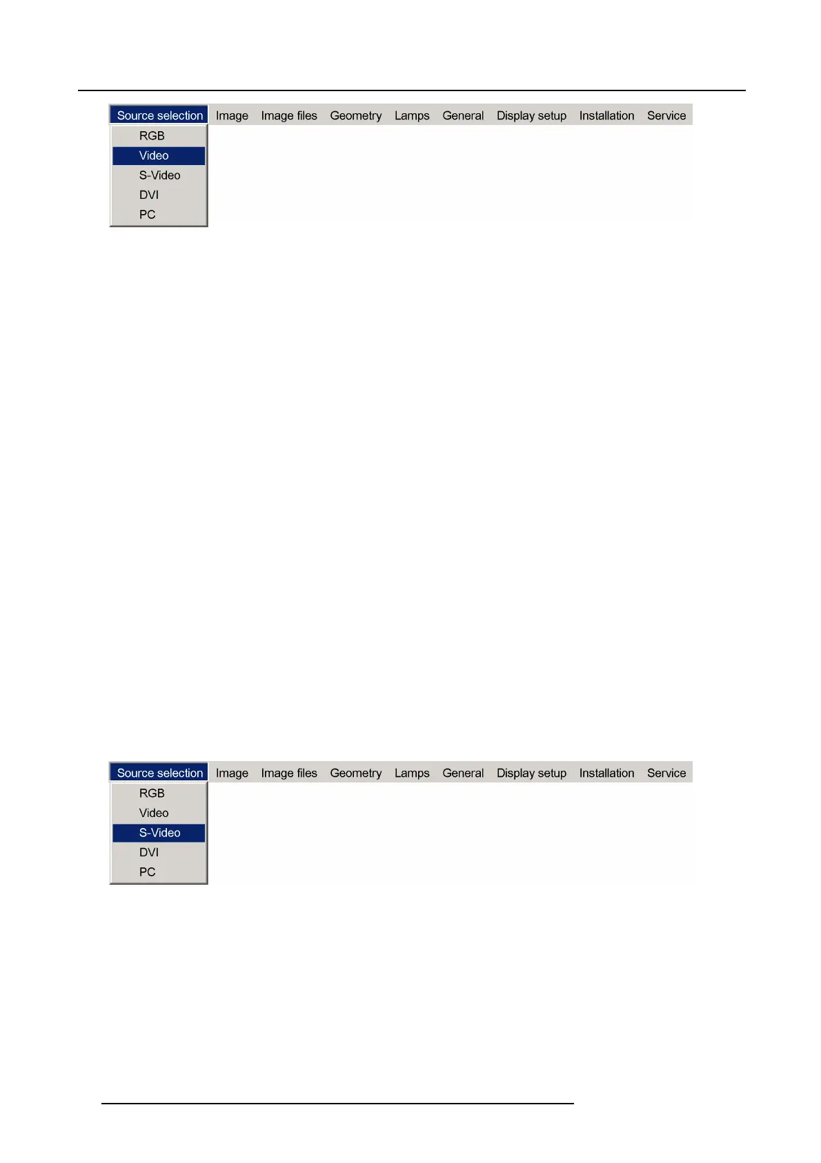 The projectors allows different adjustments on a composite video signal. Depending on the type of signal (NTSC /PAL) the termi-
