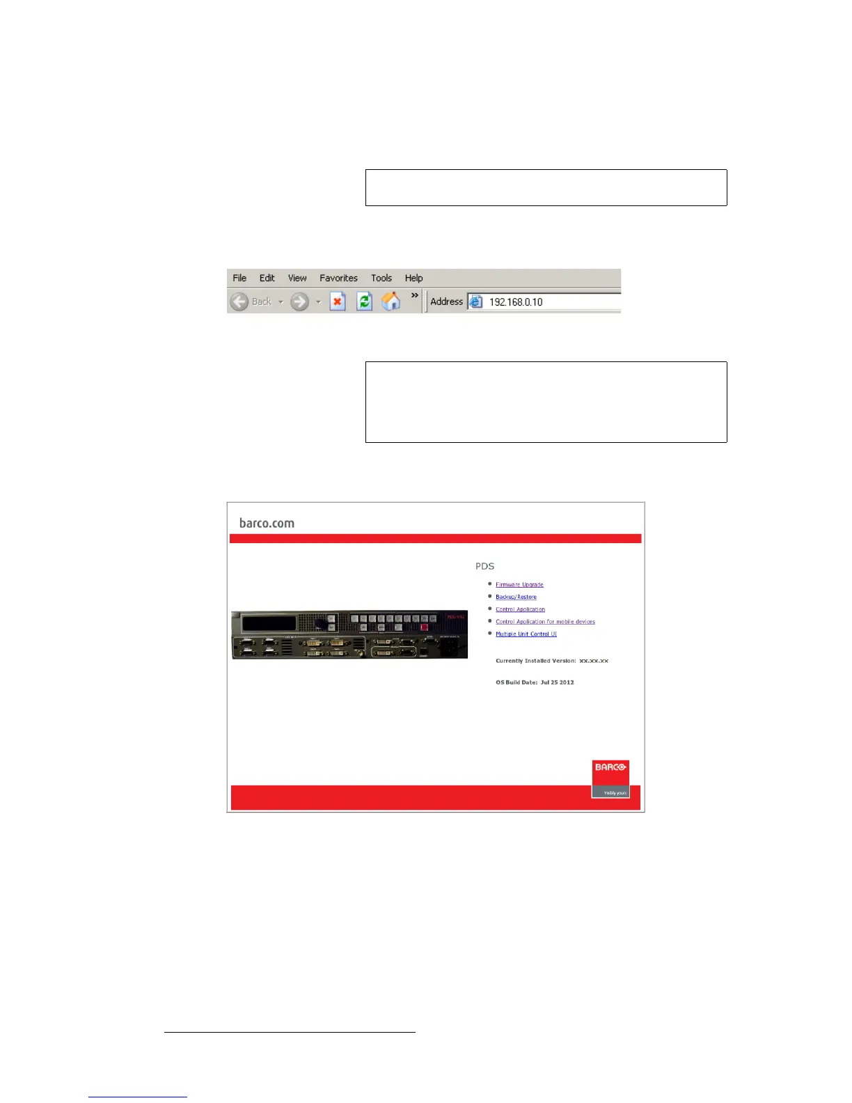 7. In the browser’s address bar, enter the PDS’s IP address.