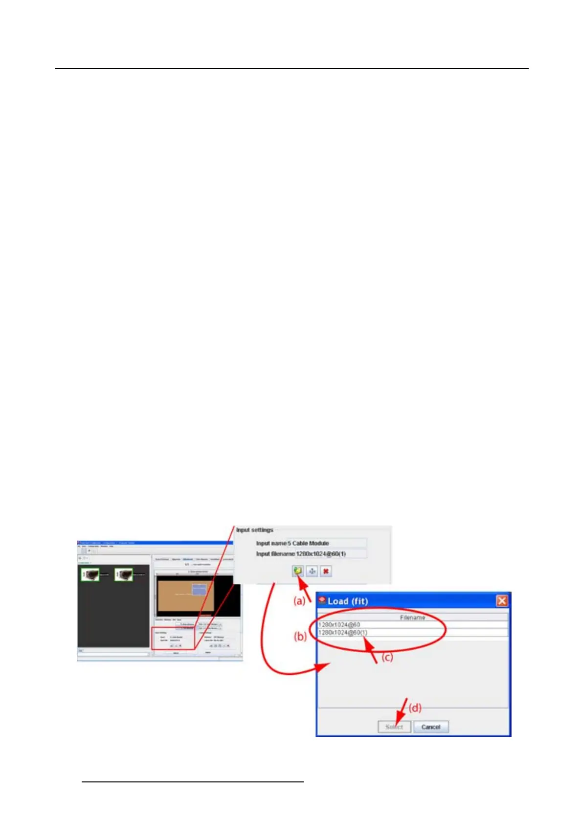 4. Click Open or Select to load the selected file (d).