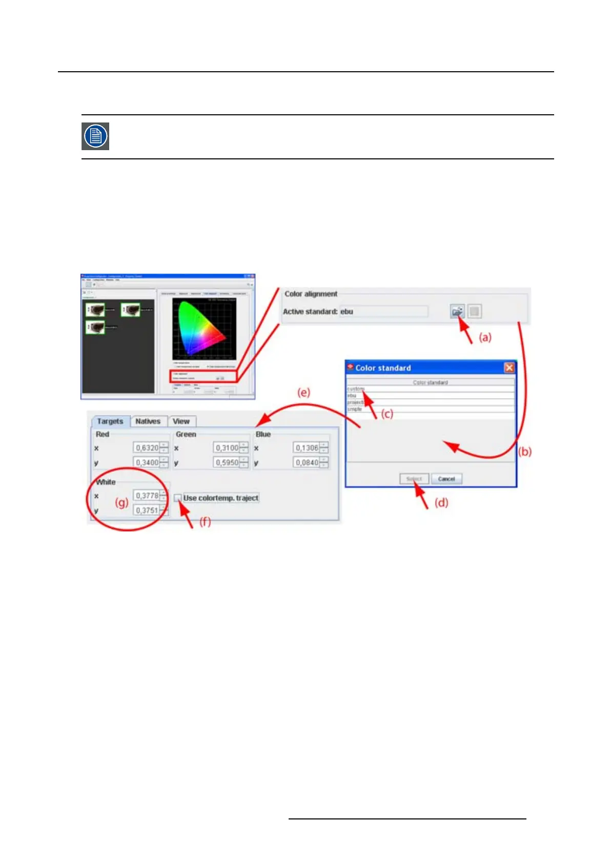 1. Click the white point in the color gamut representation (g). (image 9-6)
