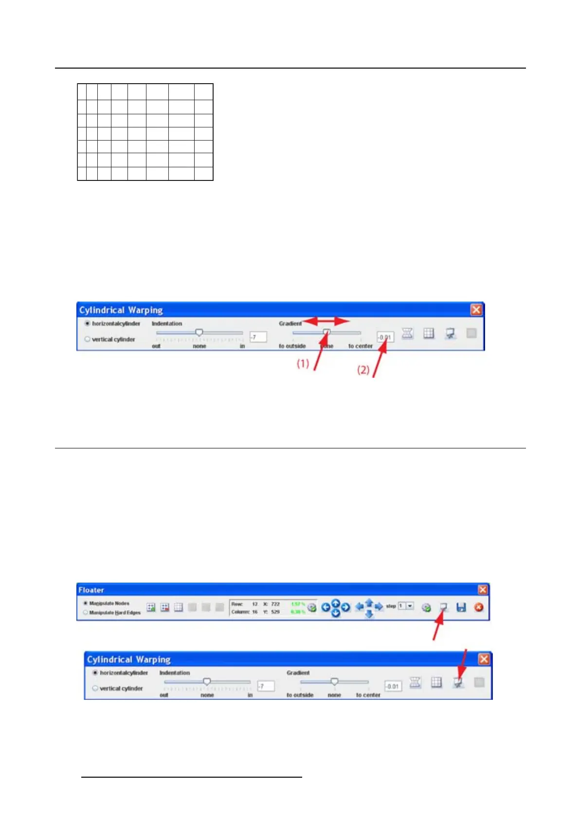 1. Within the Cylindrical warping menu, click on the slider below Gradient and move the slider to the left