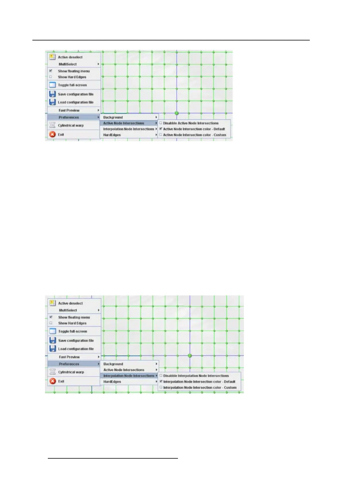 The interpolation node intersection is the line which connects 2 nodes. This line can be disabled or en-