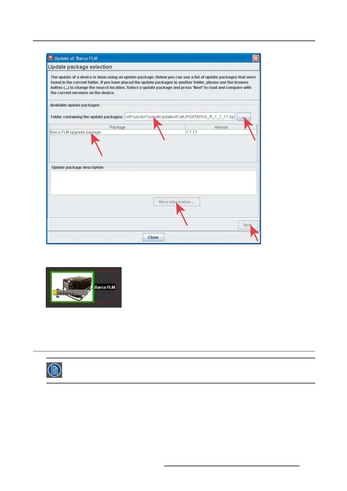 Version info will be retrieved from the projector and displayed in an overview window.