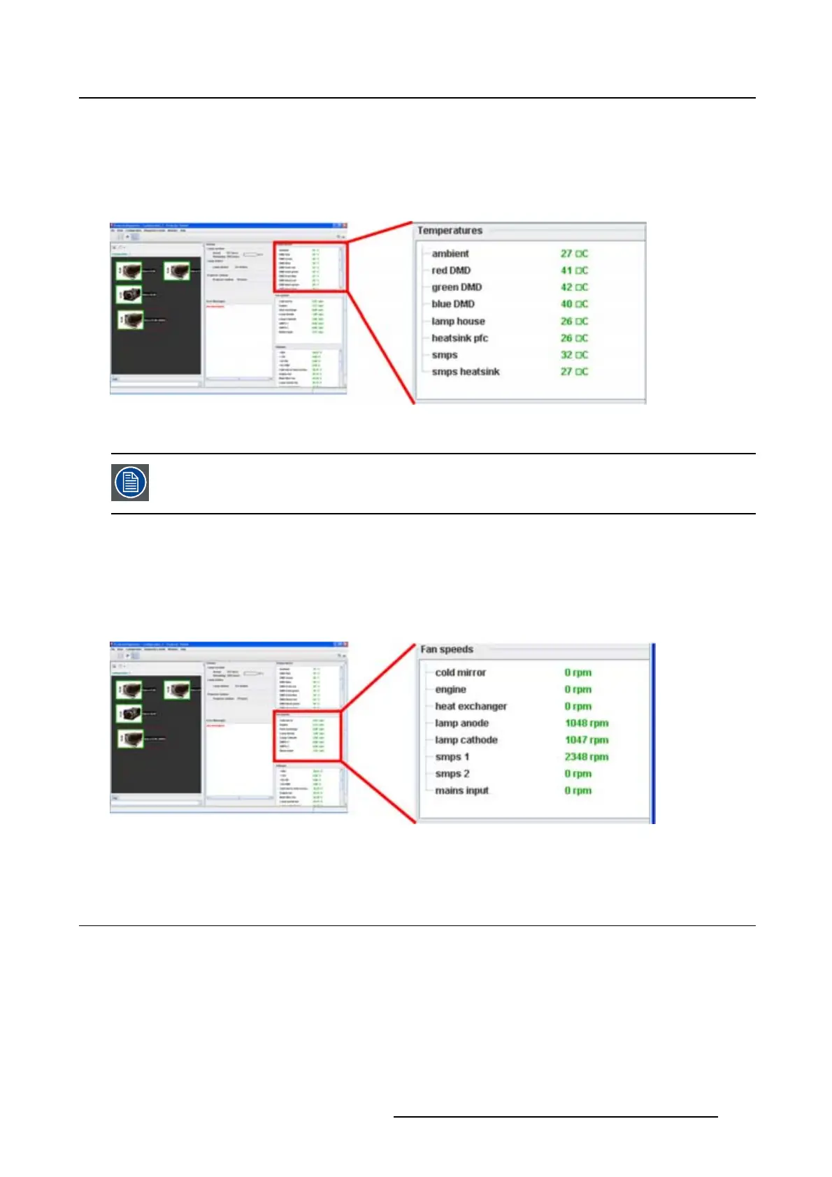 Depending on the Projector type, the content of the Temperature pane can be different.