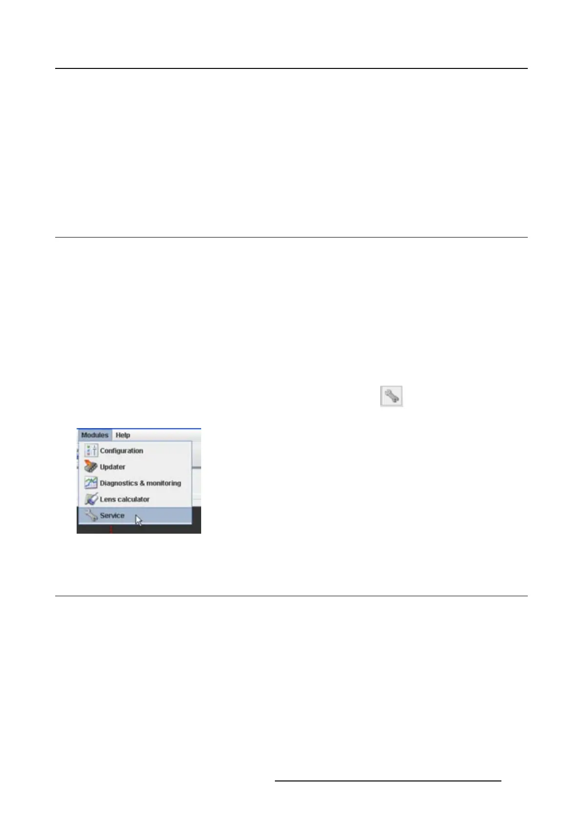 The content of the service module depends on the access level. The access level is defined by the type