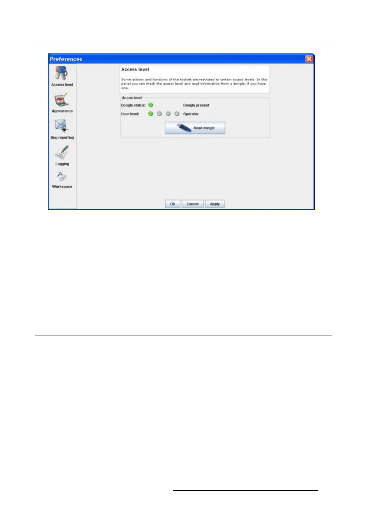 To read out the dongle settings, click on Read dongle. The current level of the inserted dongle is indicated