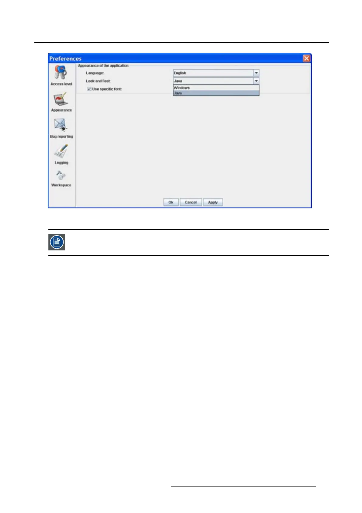 An info window will be displayed to announce that the look and feel change will take place after restarting