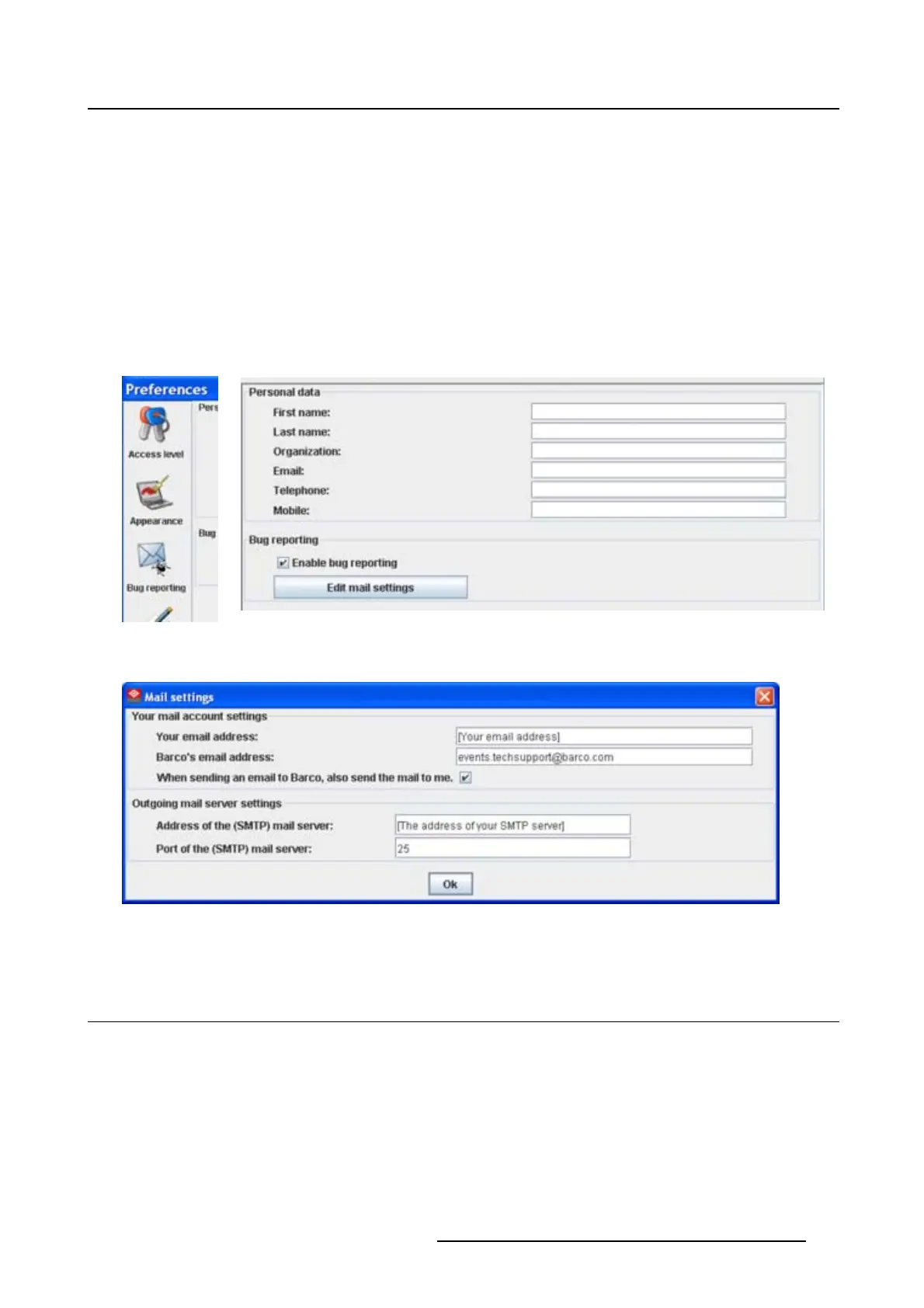- Barco’s E-mail address, automatically filled out when installing the software.