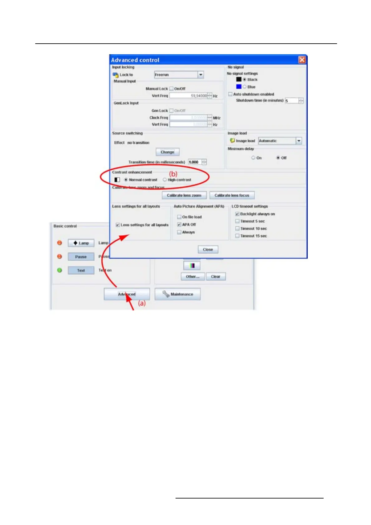2. Click on Calibrate lens zoom to search for the minimum and maximum zoom values (b).