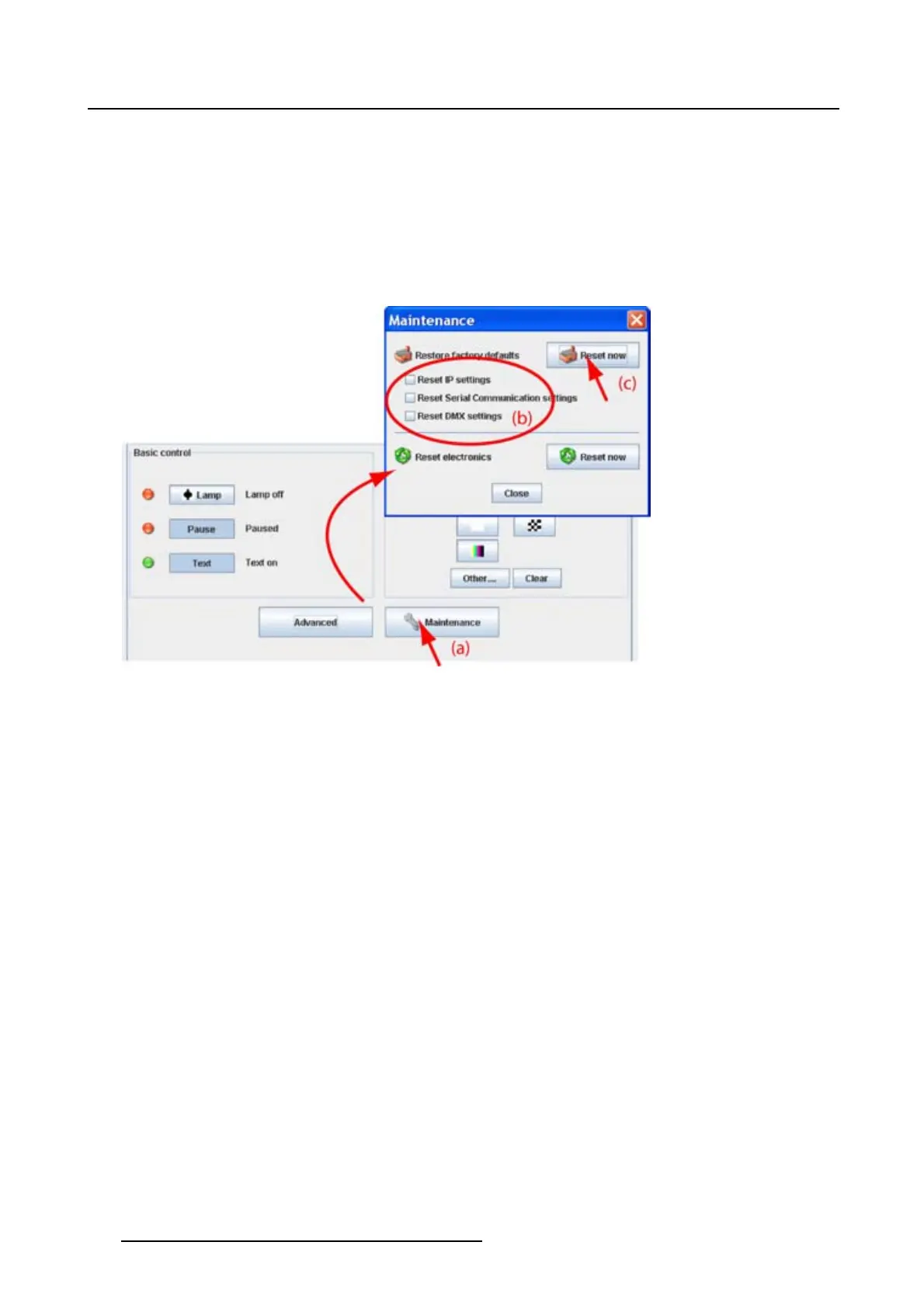 3. Click on the button Reset now next to Reset to factory defaults (c).