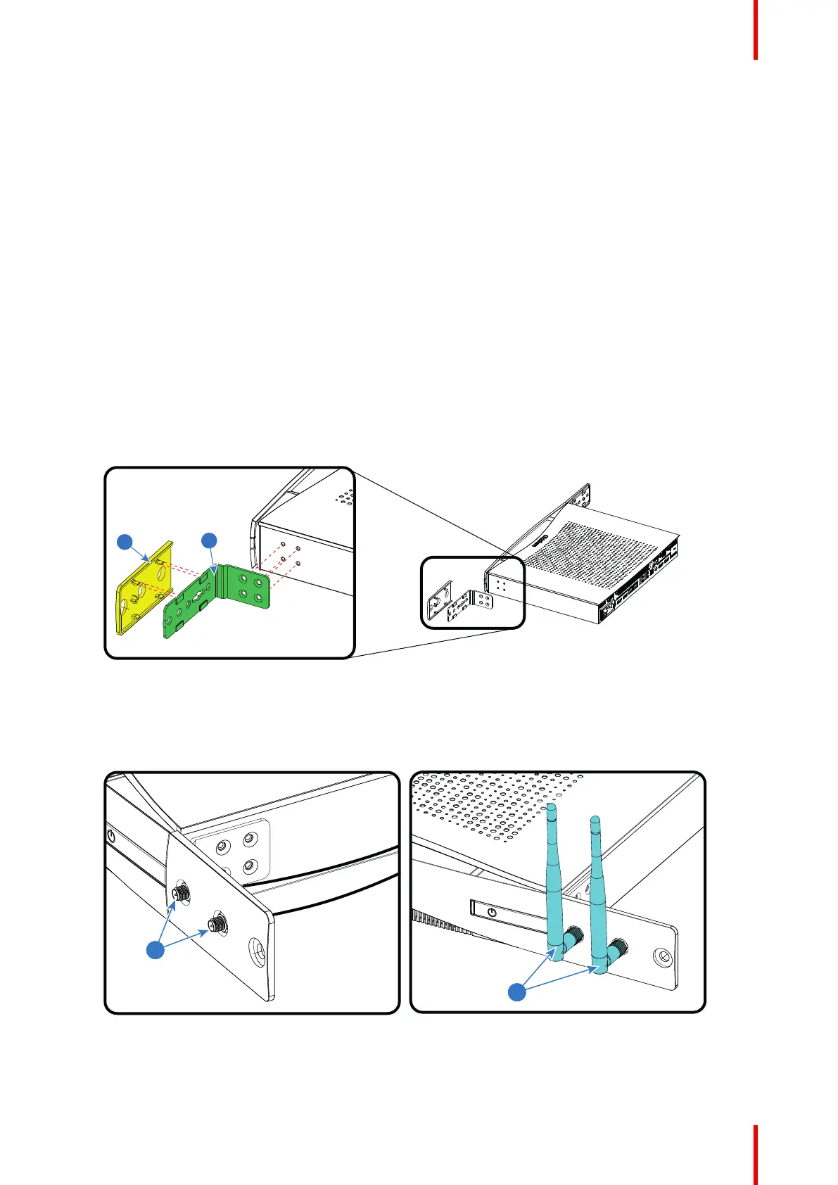 4. Insert the antenna extension cables into the provided holes (3) and turn on the antennas (4).