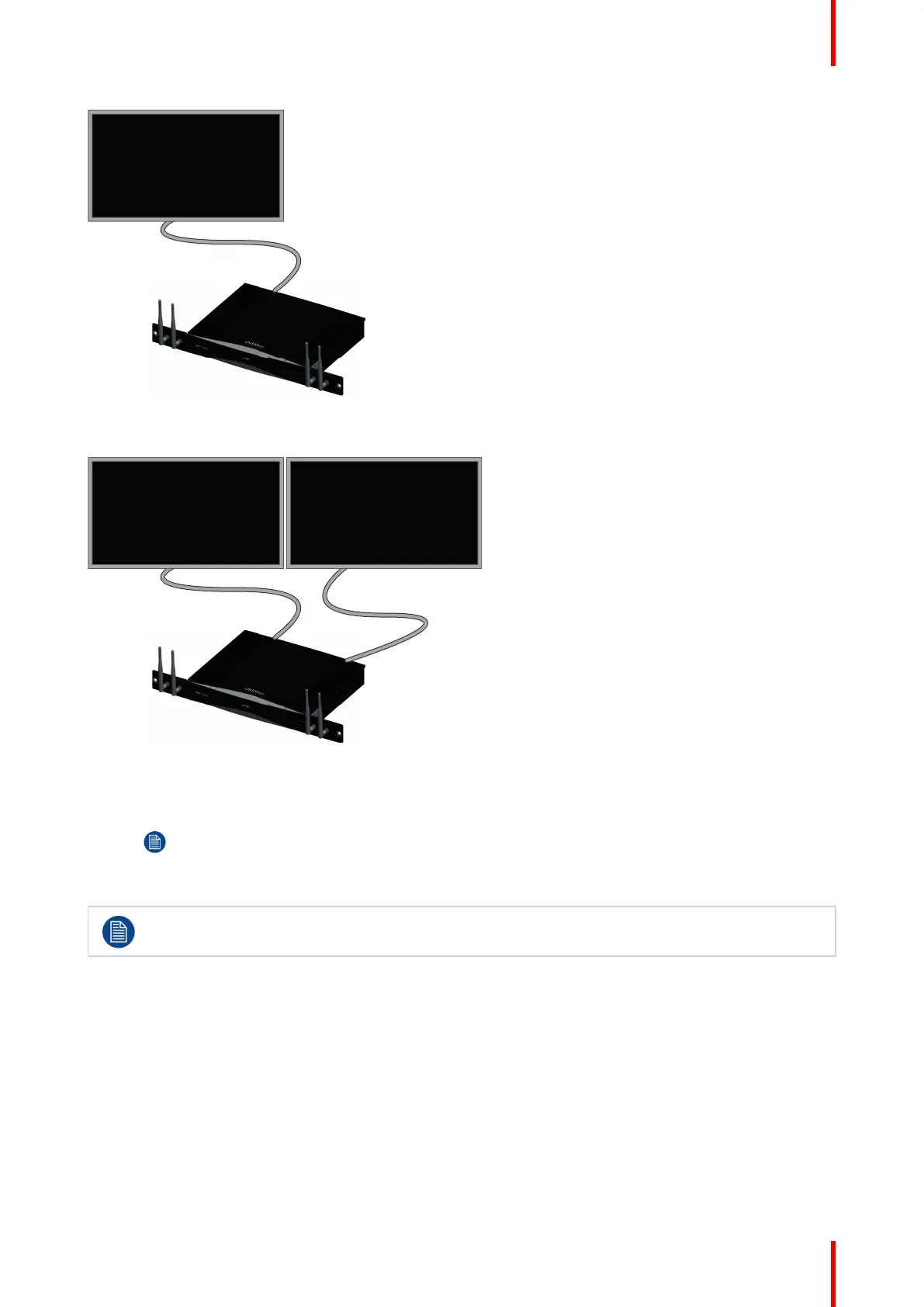 For a dual screen setup, 2 HDMI connections should be made between the Base Unit and the displays.