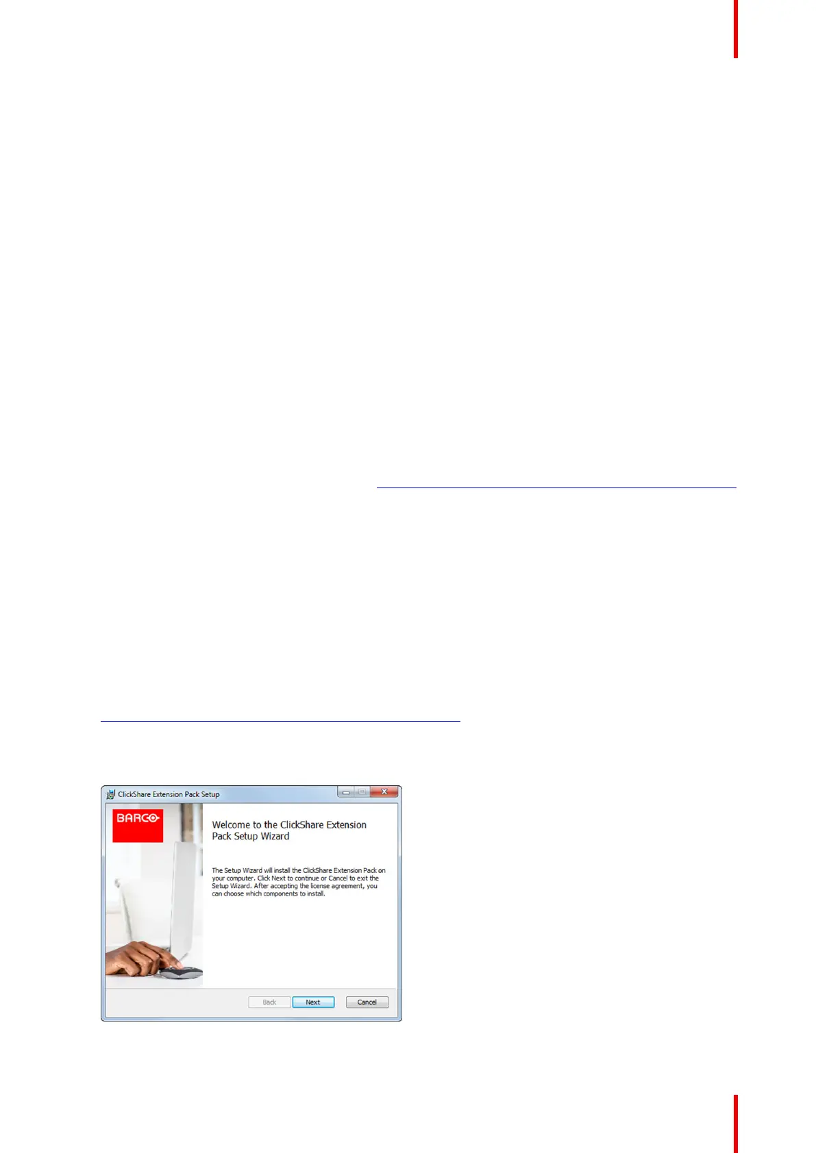 In this setup, the user runs the installer which will install the ClickShare Extension Pack on his computer after