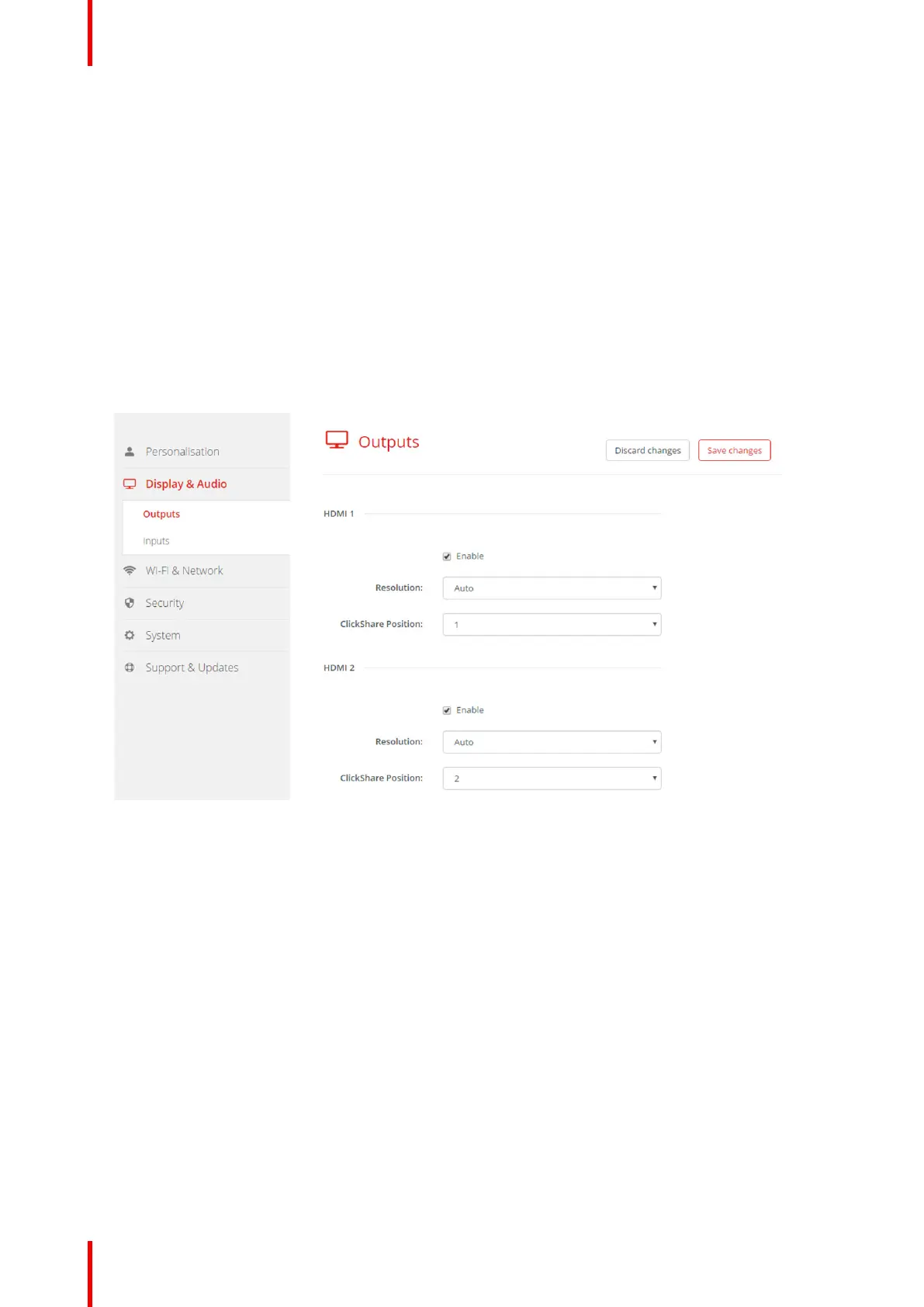 for HDMi2, ClickShare position is set to 2, the content will be displayed on display 2