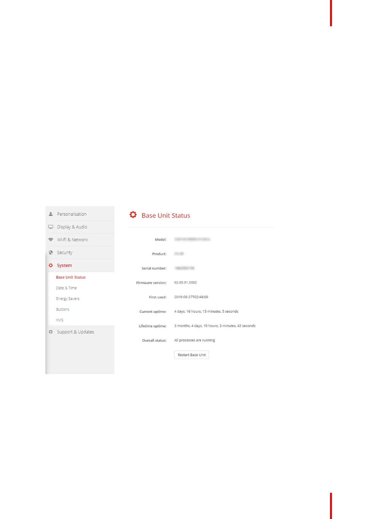 3. To restart the Base Unit, click on Restart Base Unit.