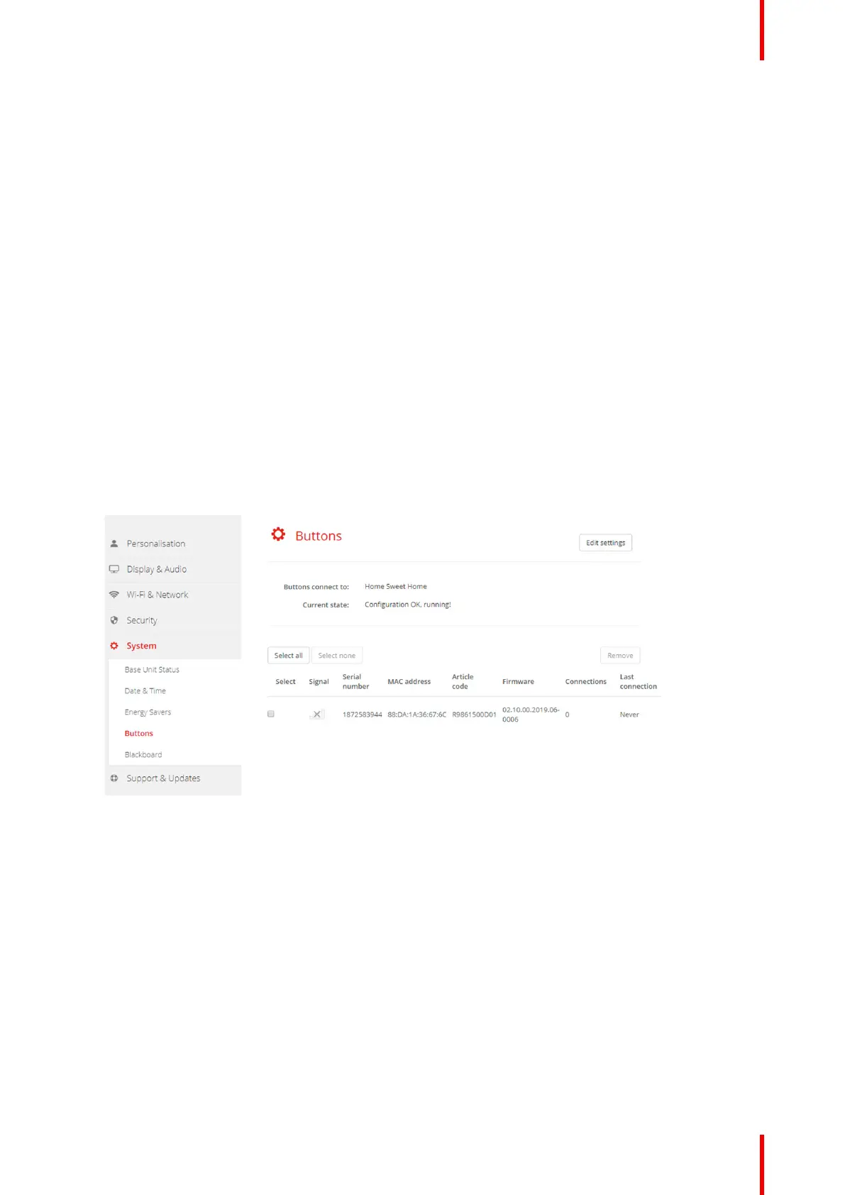 The Button page indicates to which Base Unit the Buttons are connected. It indicates also the current state.