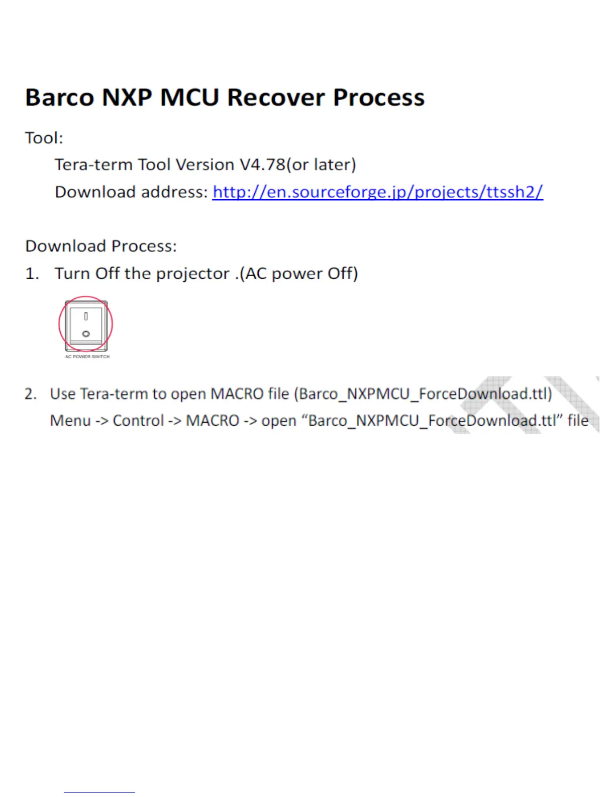 Barco RLM-W14 - 5-4. Recover Process Procedure for NXP MCU