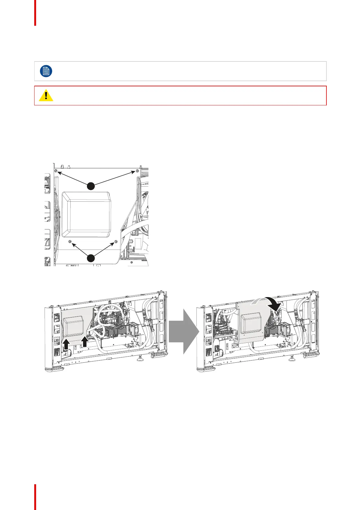 1. Remove the four screws holding the side cover (reference 1). Use a T20 Torx screwdriver.