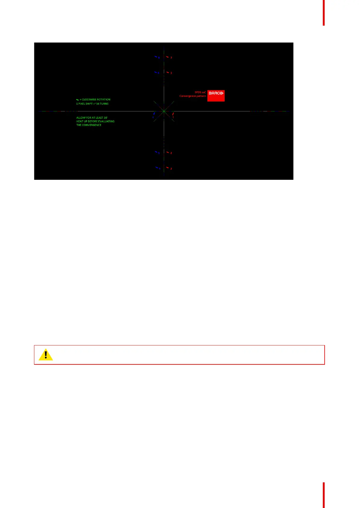 • Before starting to adjust the convergence, let the projector warm up for at least 1 hour, while projecting the