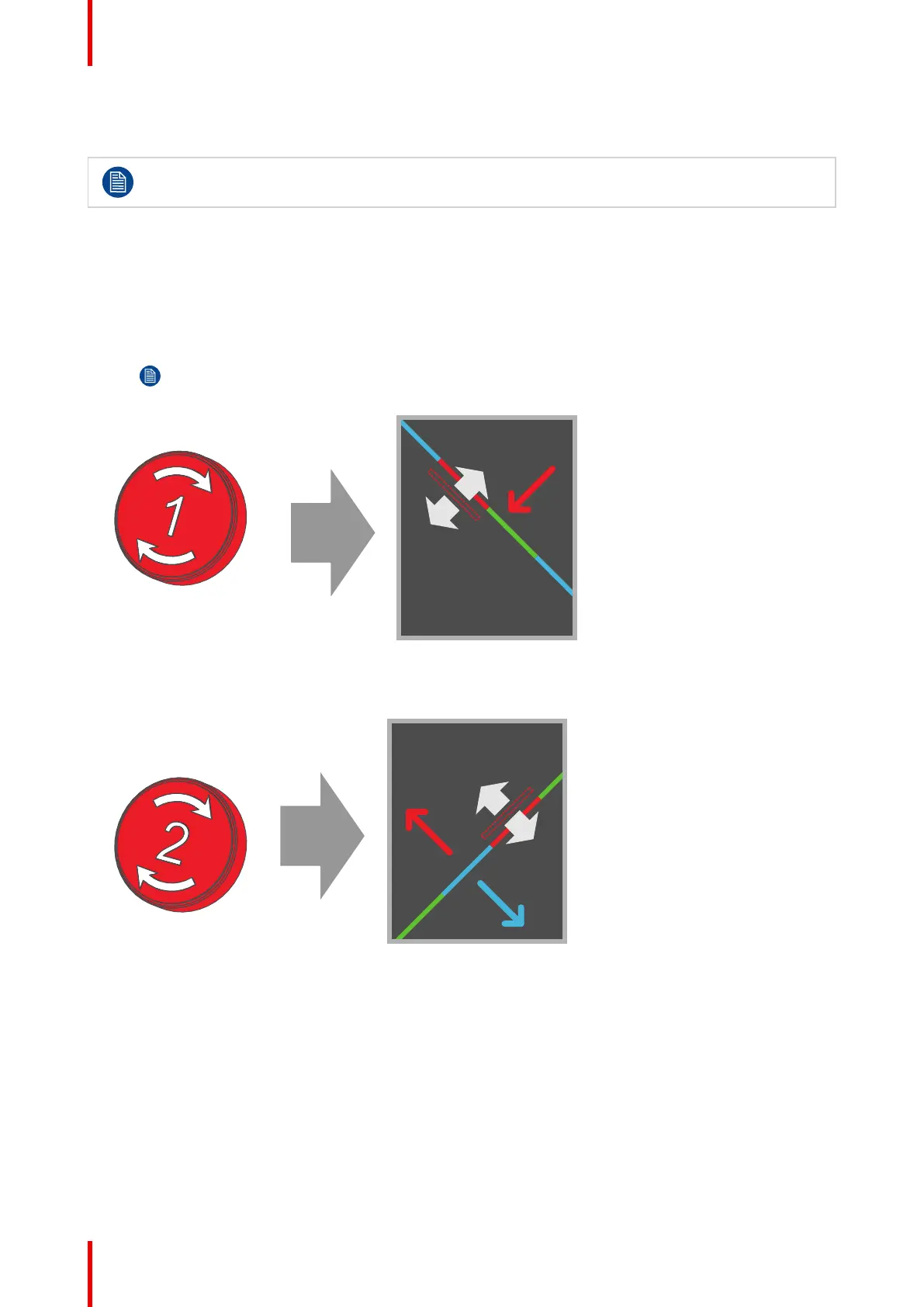 2. Slightly turn the red colored control knob number 2 until the red pattern in the lower left of the projected