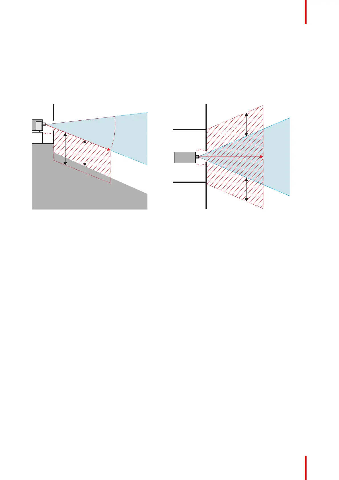 The Height (H) between the floor and the light beam coming out of the projector is smaller than the minimum