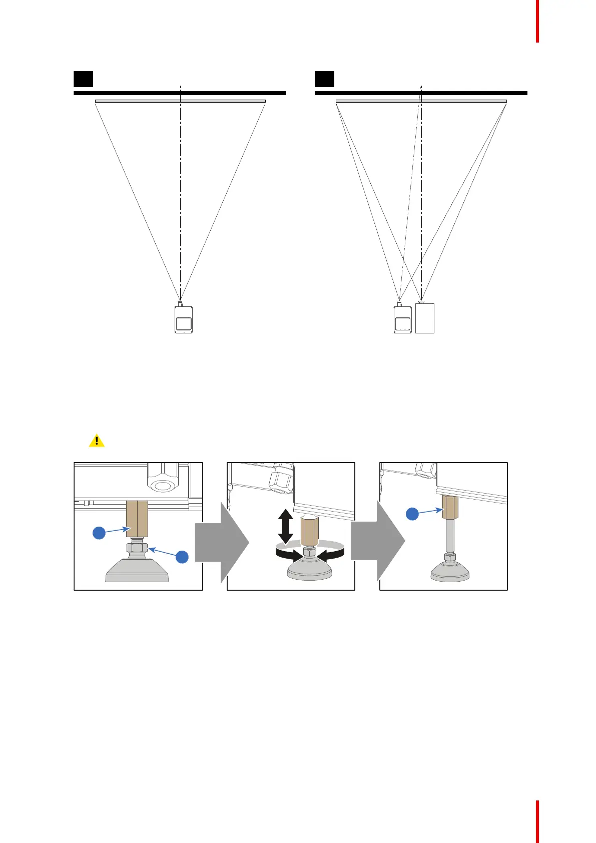 • Secure the leg height by tightening the nuts (reference 1 Image 4–3) of each projector foot.