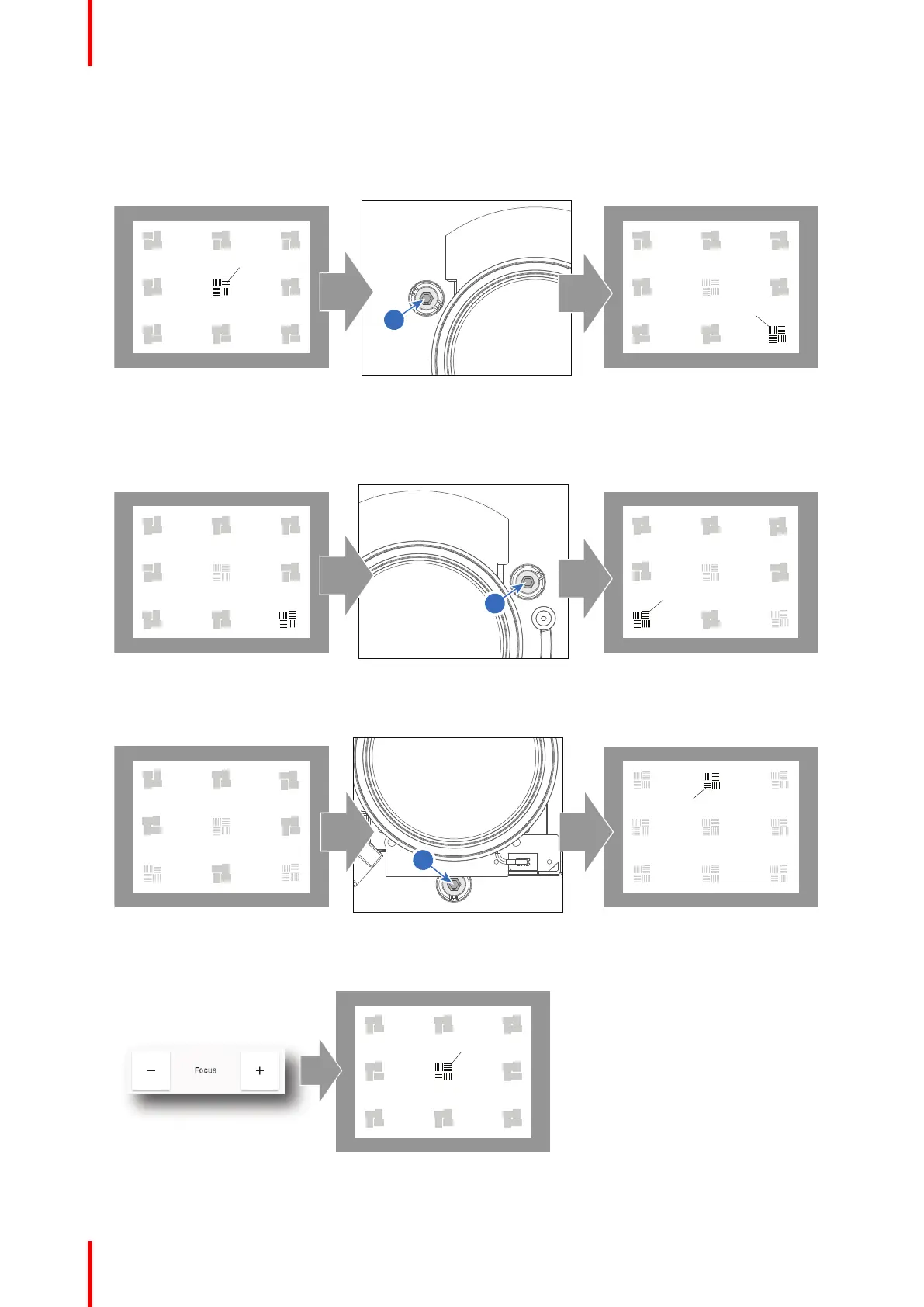 4. Optimize the focus of the projected image in the center of the screen using the focus buttons in the