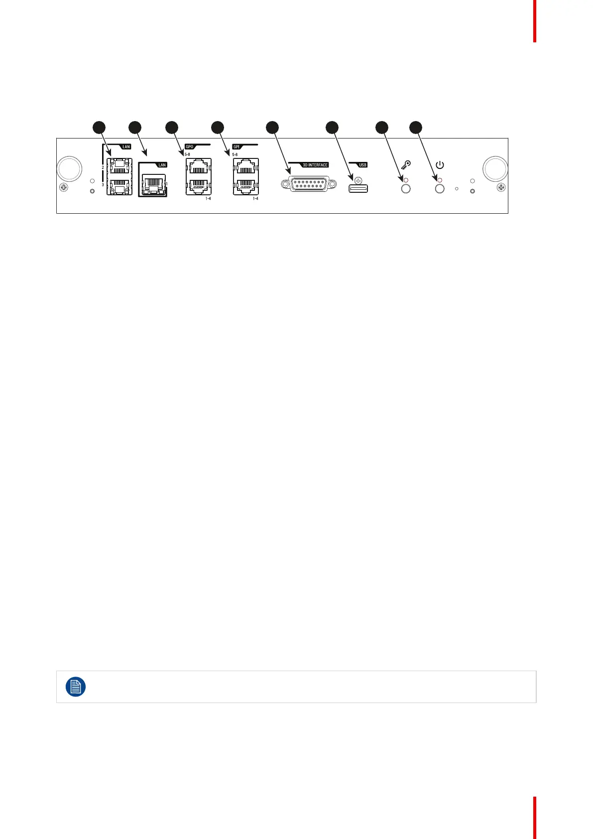The 3D interface port can be used to connect external 3D devices to the projector. All signals necessary for 3D