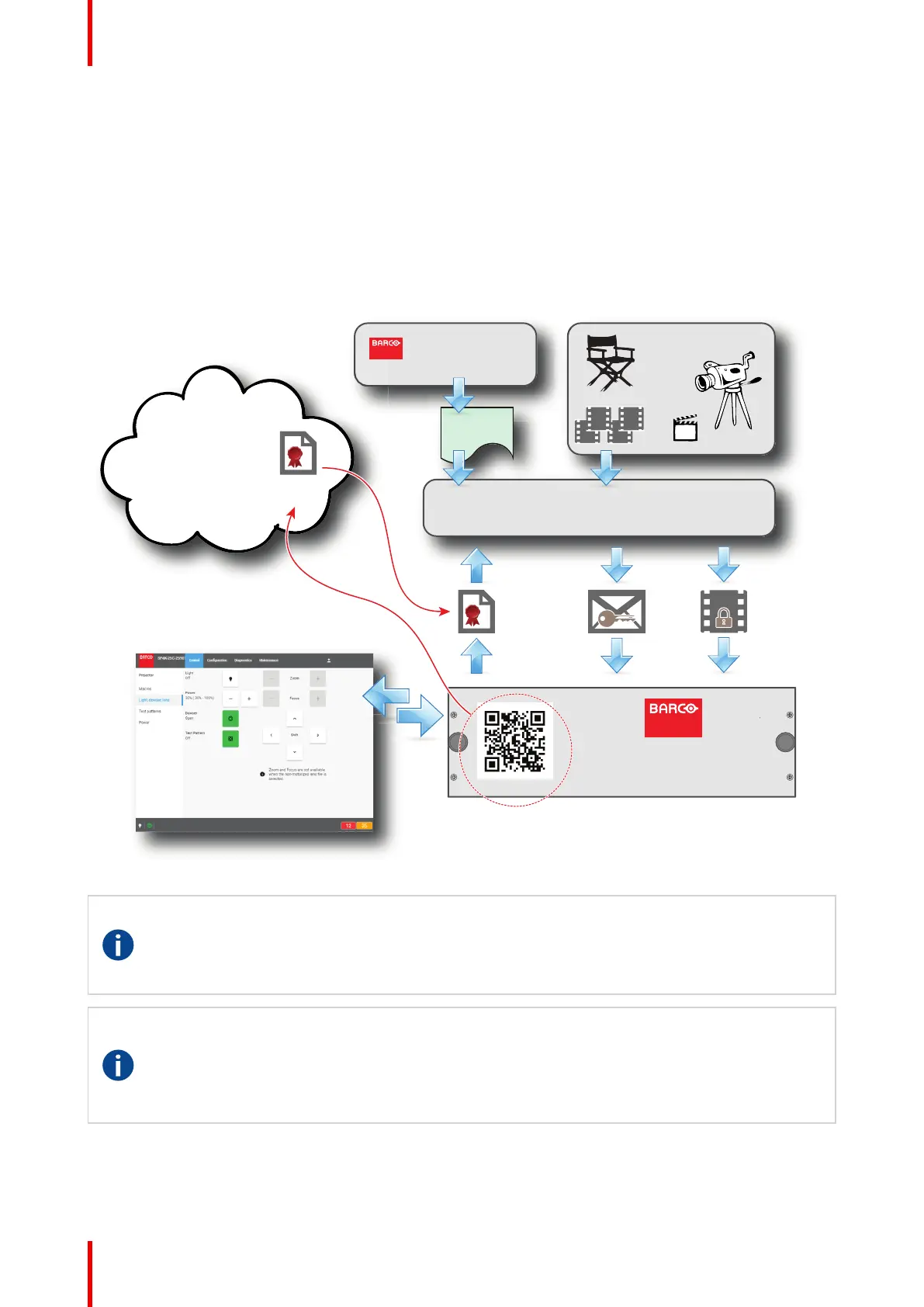 The device certificate (*.pem) of the ICMP-X is a digital certificate signed by Barco which is required when