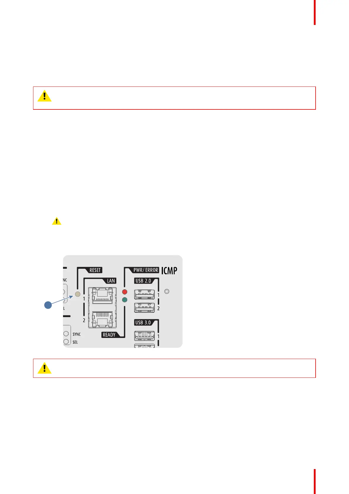 2. press the ICMP-X hardware reset button a few seconds (reference 3 Image 7–11) .