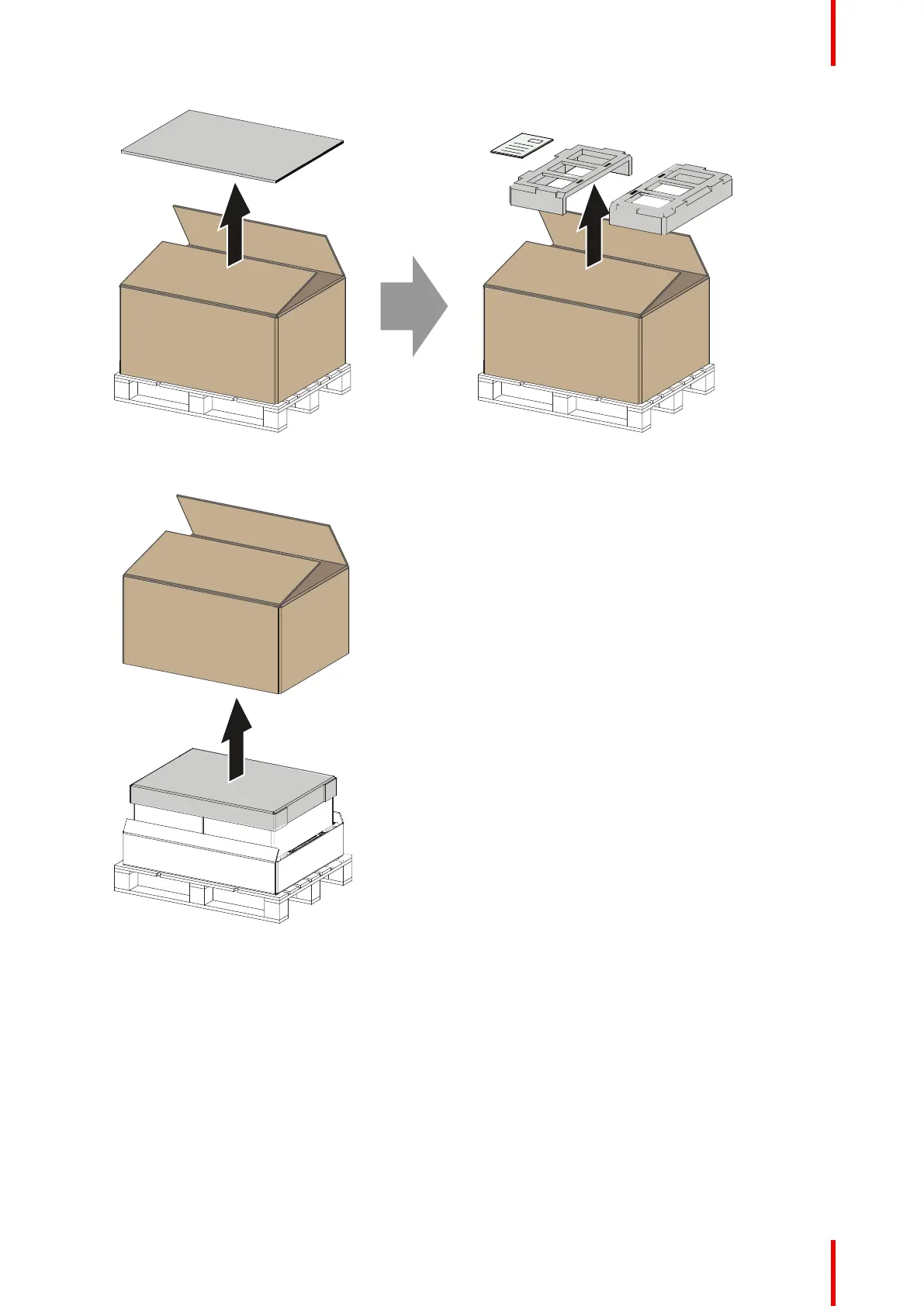 6. Cut off foam along slots with arrow indication (x8). Remove foam in the 4 corners before lifting the