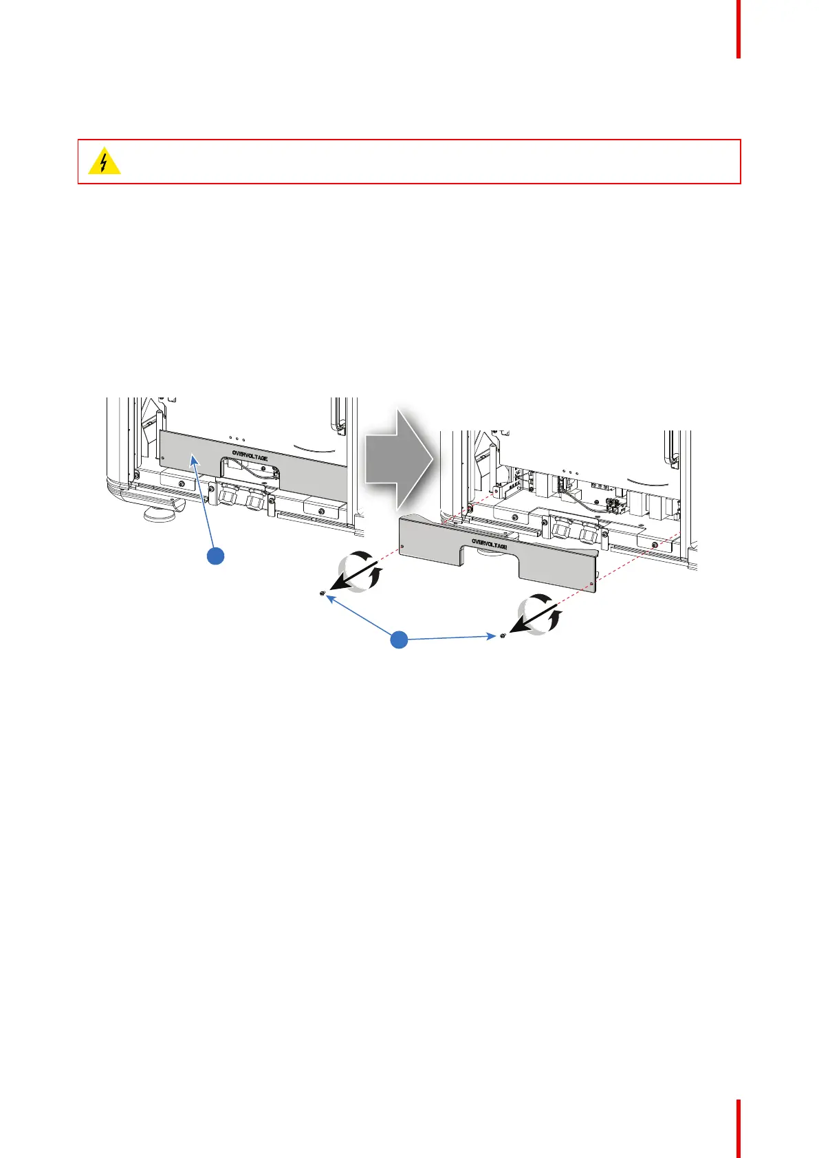 2. Remove the two screws (reference 2) of the net input cover (reference 1). Use a T20 Torx screwdriver.