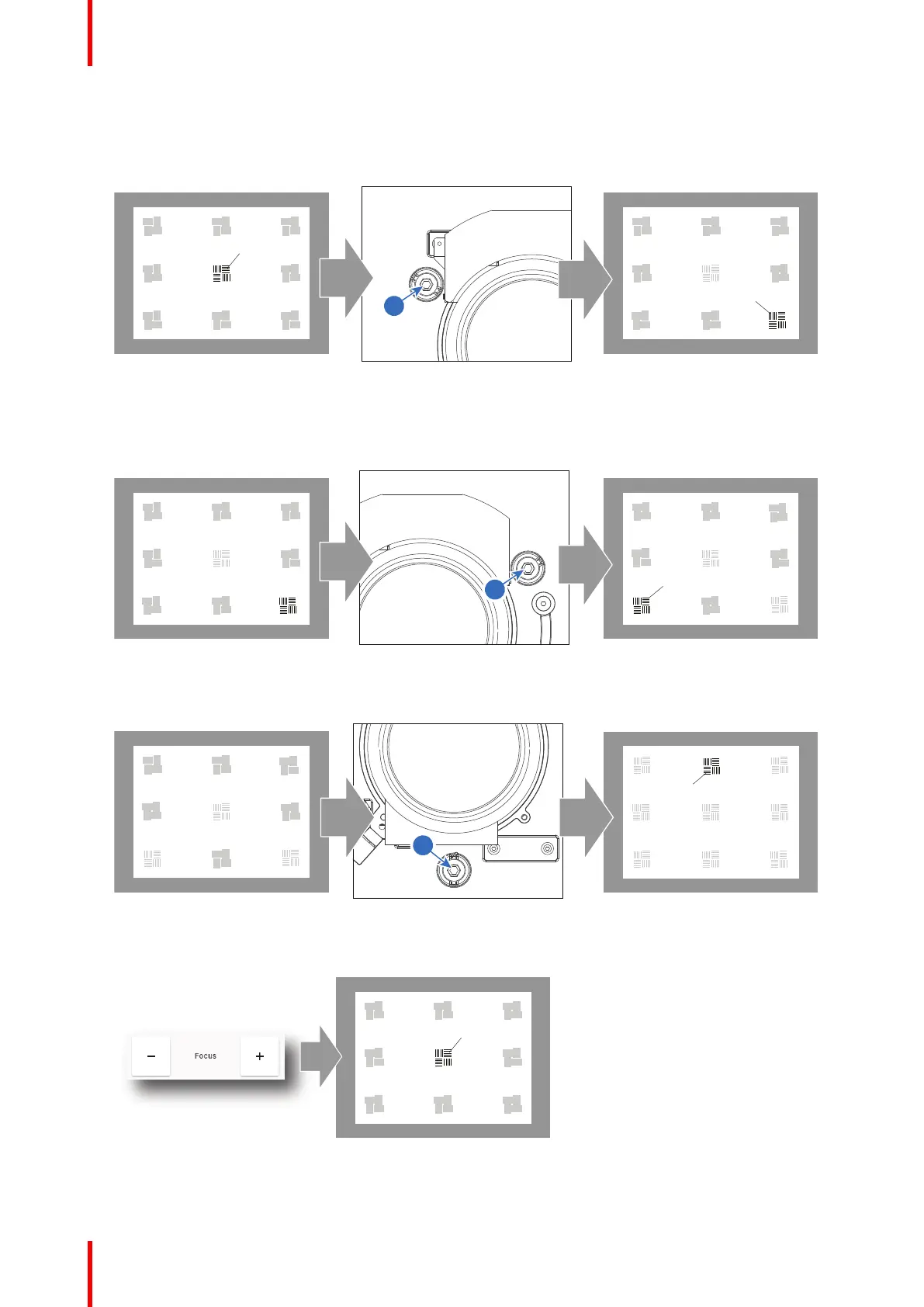 5. Repeat from step 1 until the projected focus pattern is as sharp as possible in the center, left, right, top and