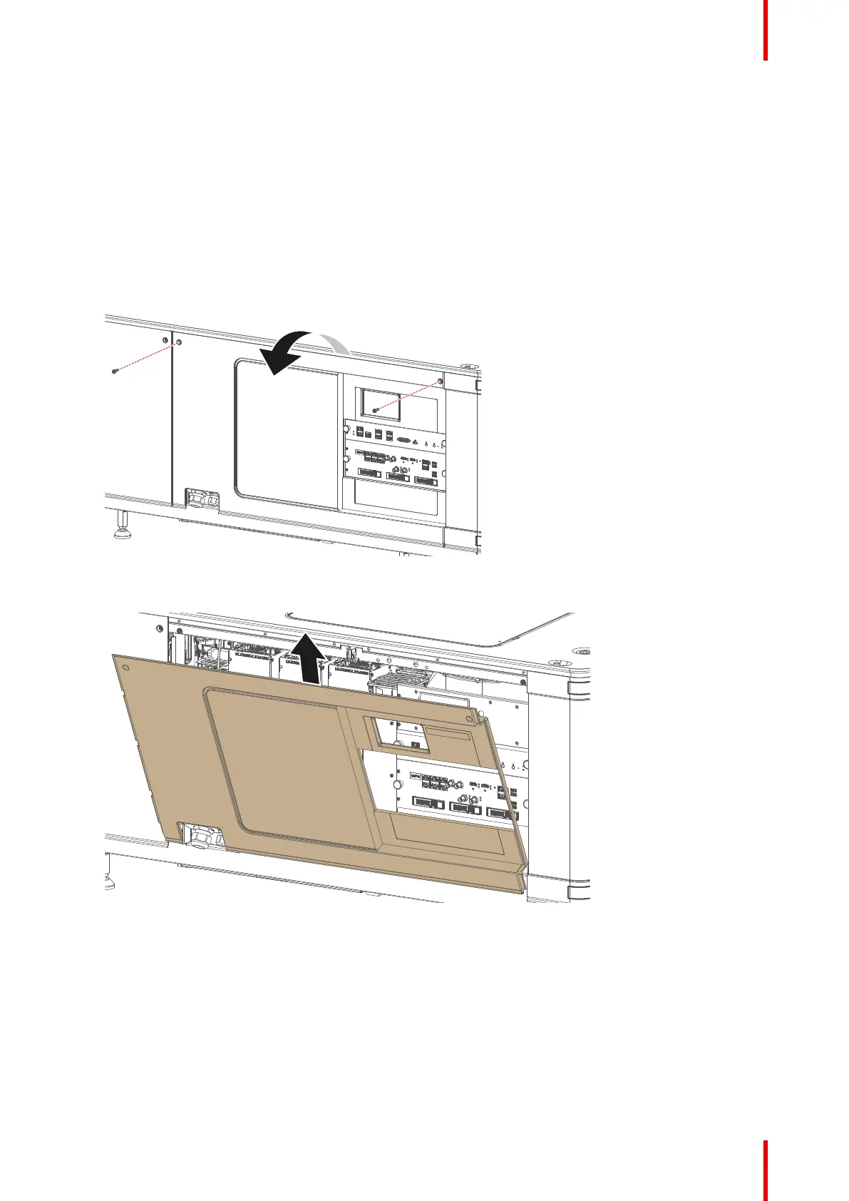 3. Remove the two screws at the top of the side cover. Use a T20 Torx screwdriver.