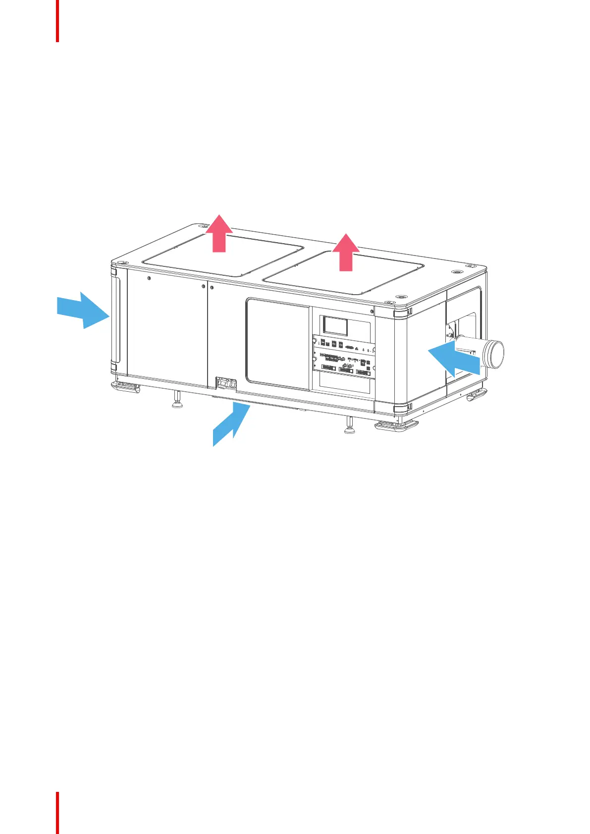 bottom side of the projector. The air outlets are located on the top and on the back side of the projector.