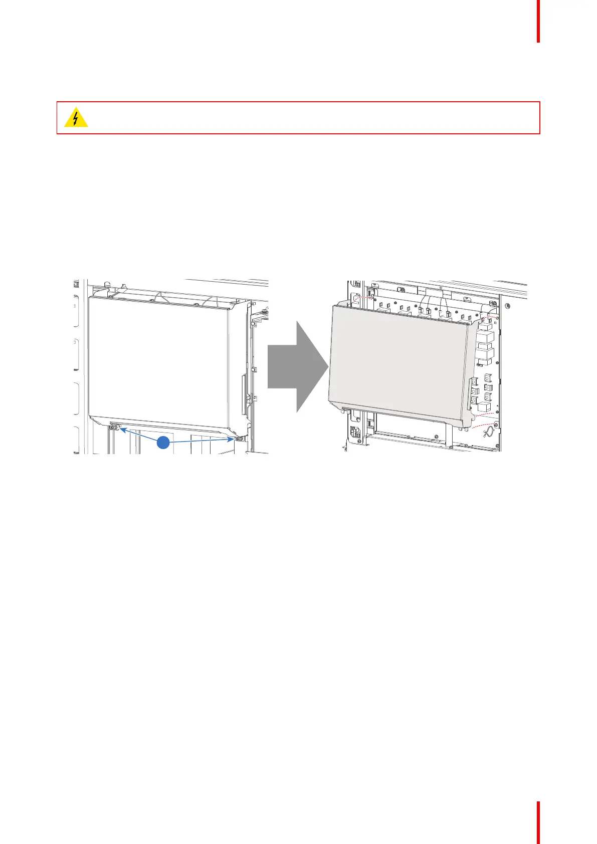 CAUTION: Whenever you access the mains board and thus remove the net input cover, make sure