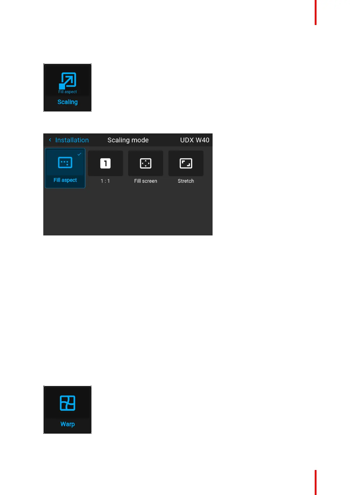 2. In the Scaling menu, select the desired scaling mode and confirm.