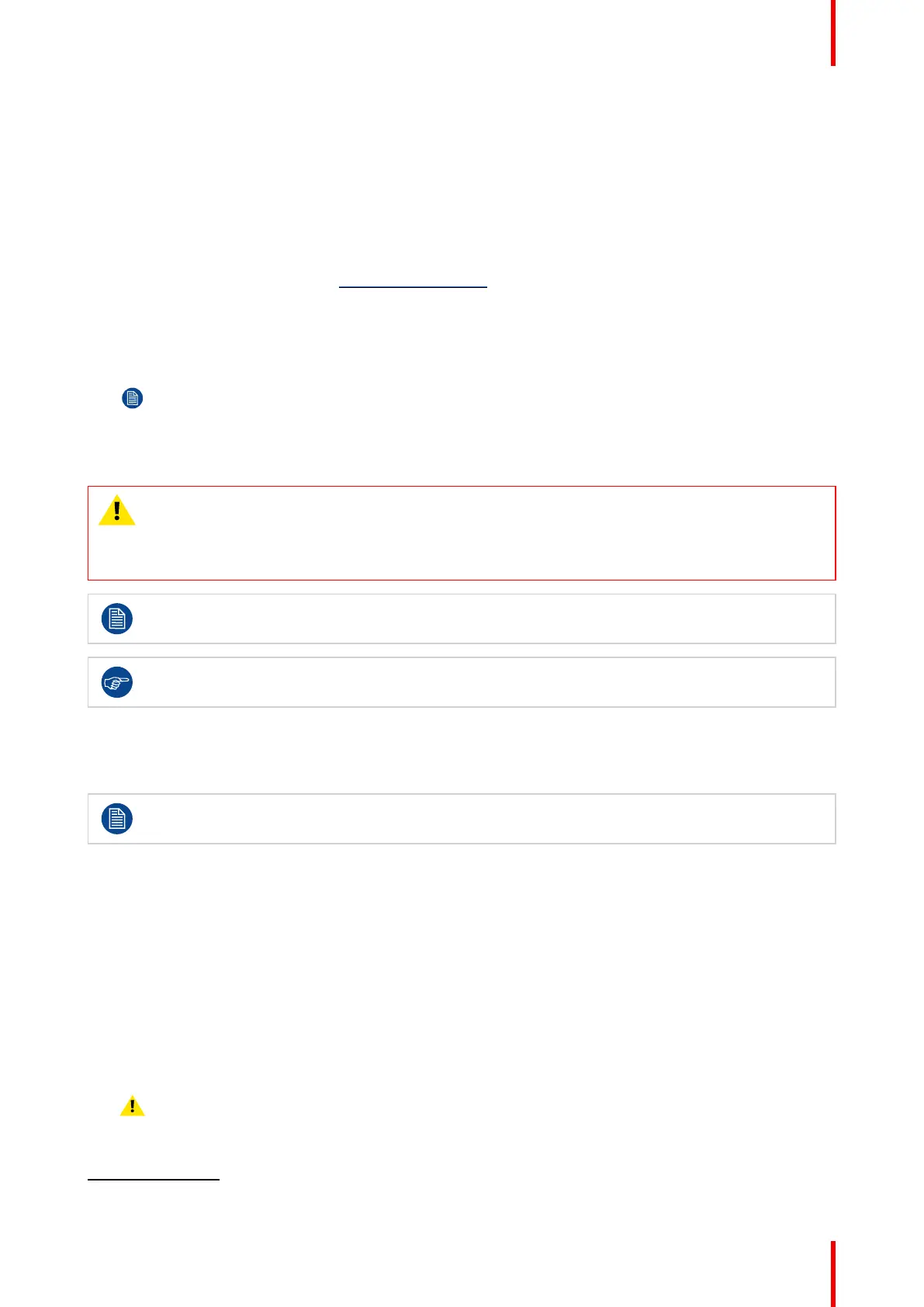 some rare cases, this may even bring damage to the device. Always contact Barco if you want to