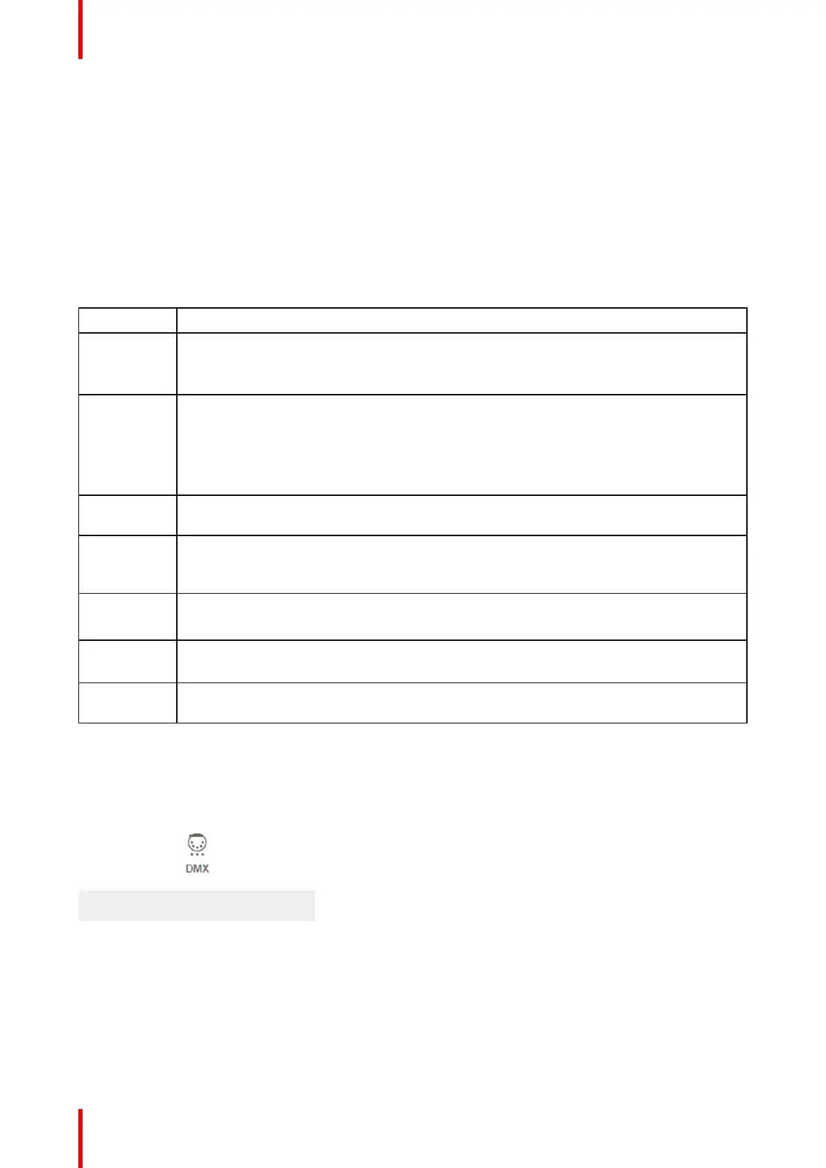 For the full mapping of each used channel, refer to the DMX chart in the appendices. See