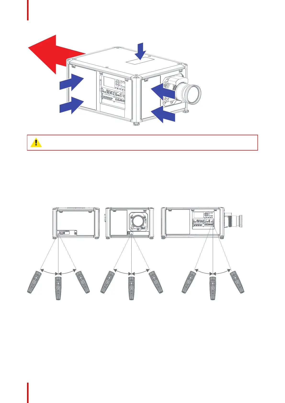 The projector has three Infra Red receivers: one at the rear (next to the power input), one at the front (below