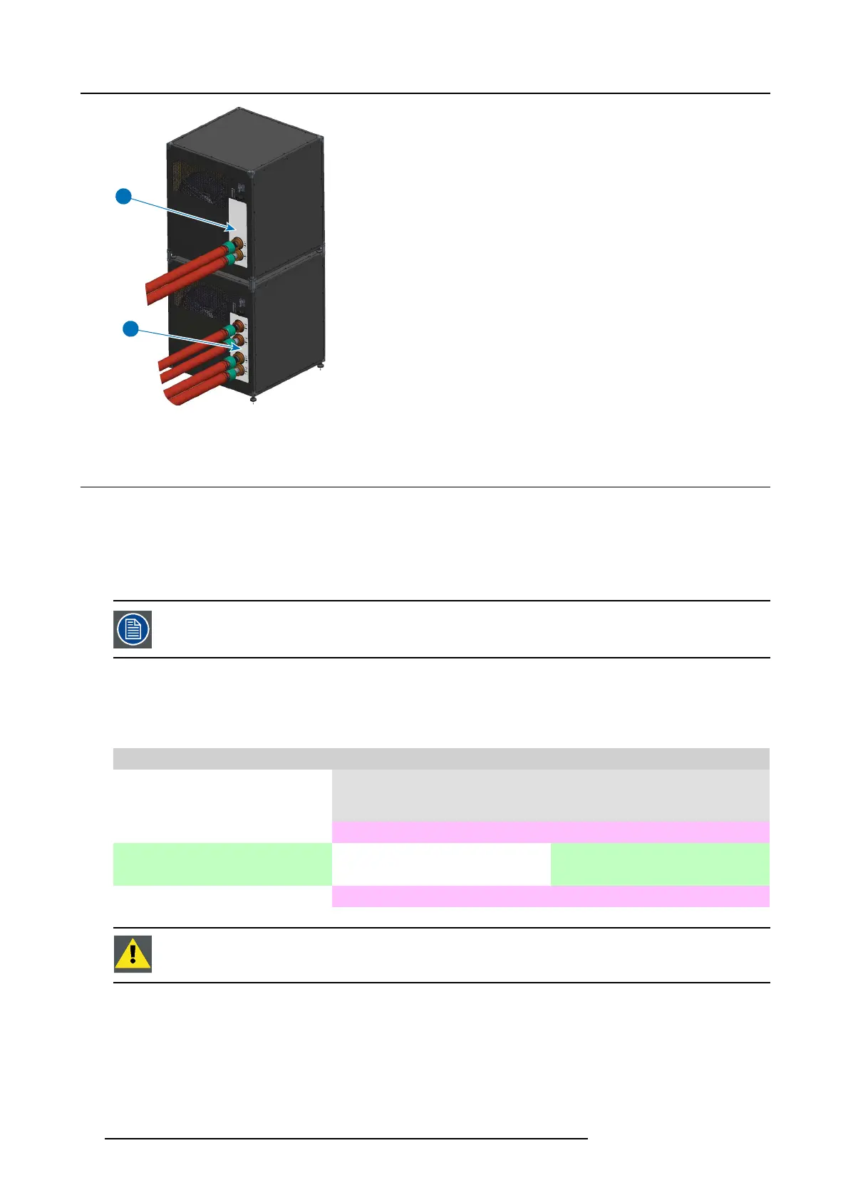 The cooling circuit of the chiller(s) has to be conn ected with the cooling circuit of the pro jector. For that hoses are needed. The