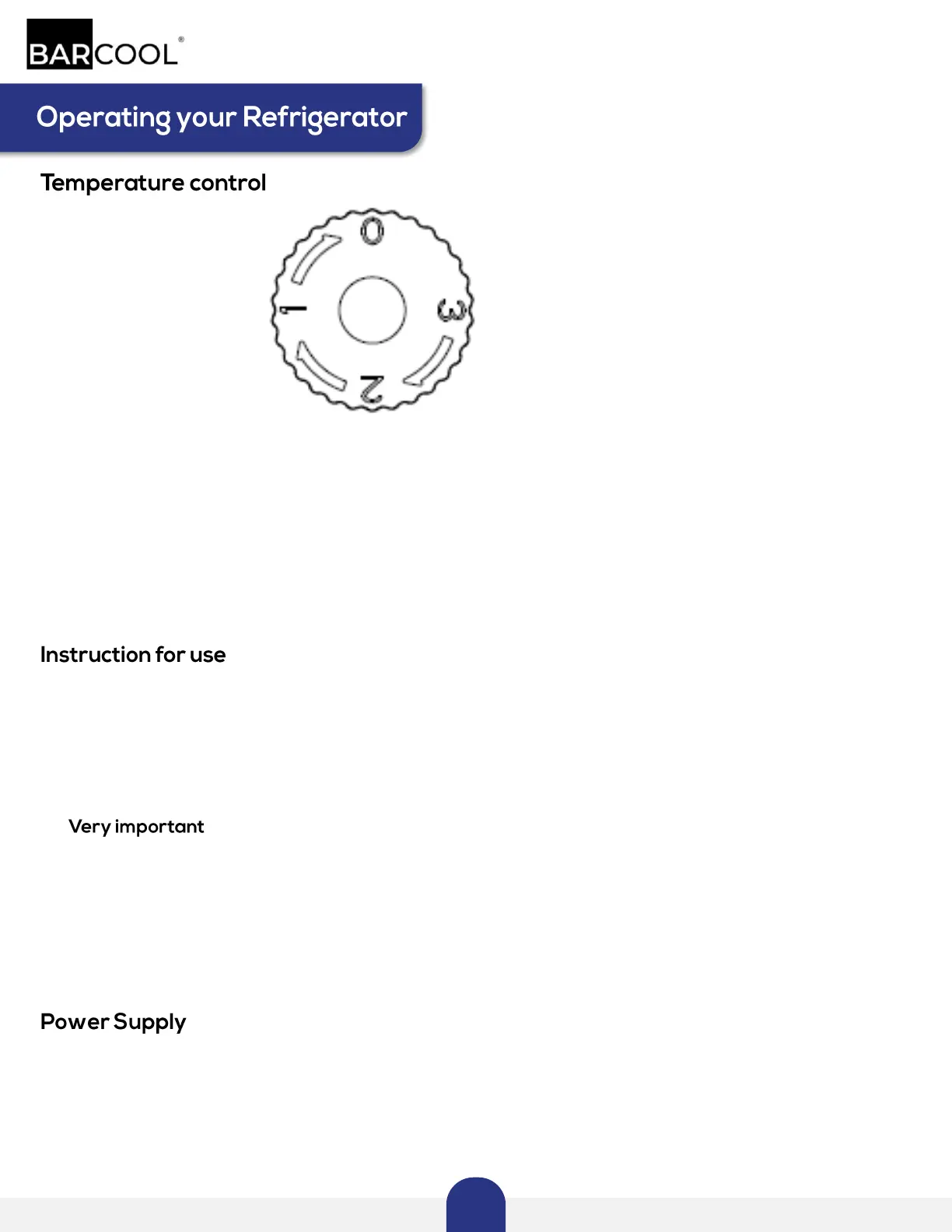 Barcool BAR30 LED - Operating Your Refrigerator; Temperature Control; Instruction for Use; Power Supply