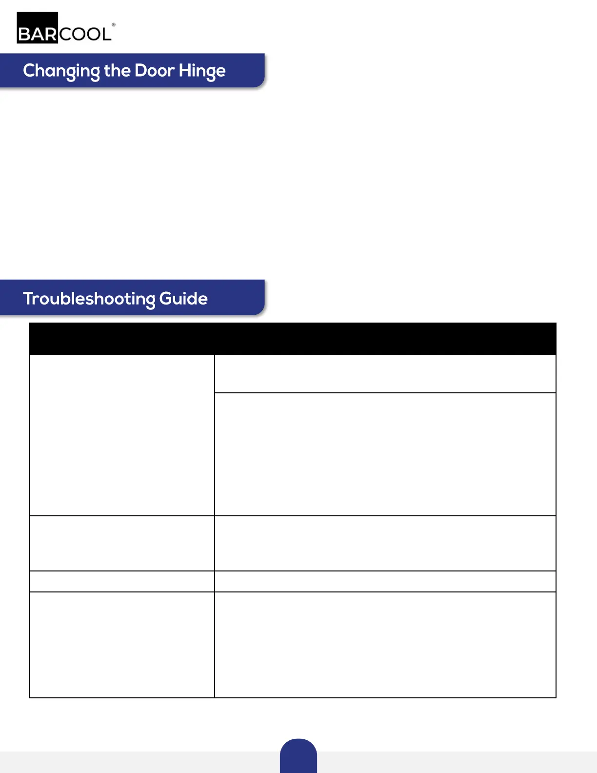 Barcool BAR40 LED - Changing the Door Hinge; Troubleshooting Guide