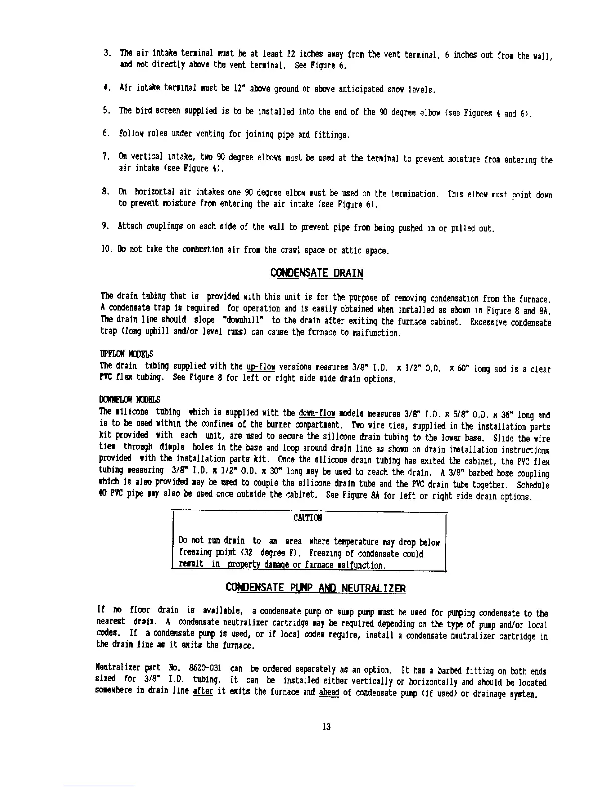 Bard CH060D36B - Condensate Drain; Condensate Pup and Neutralizer; Upflow Models; Downflow Models