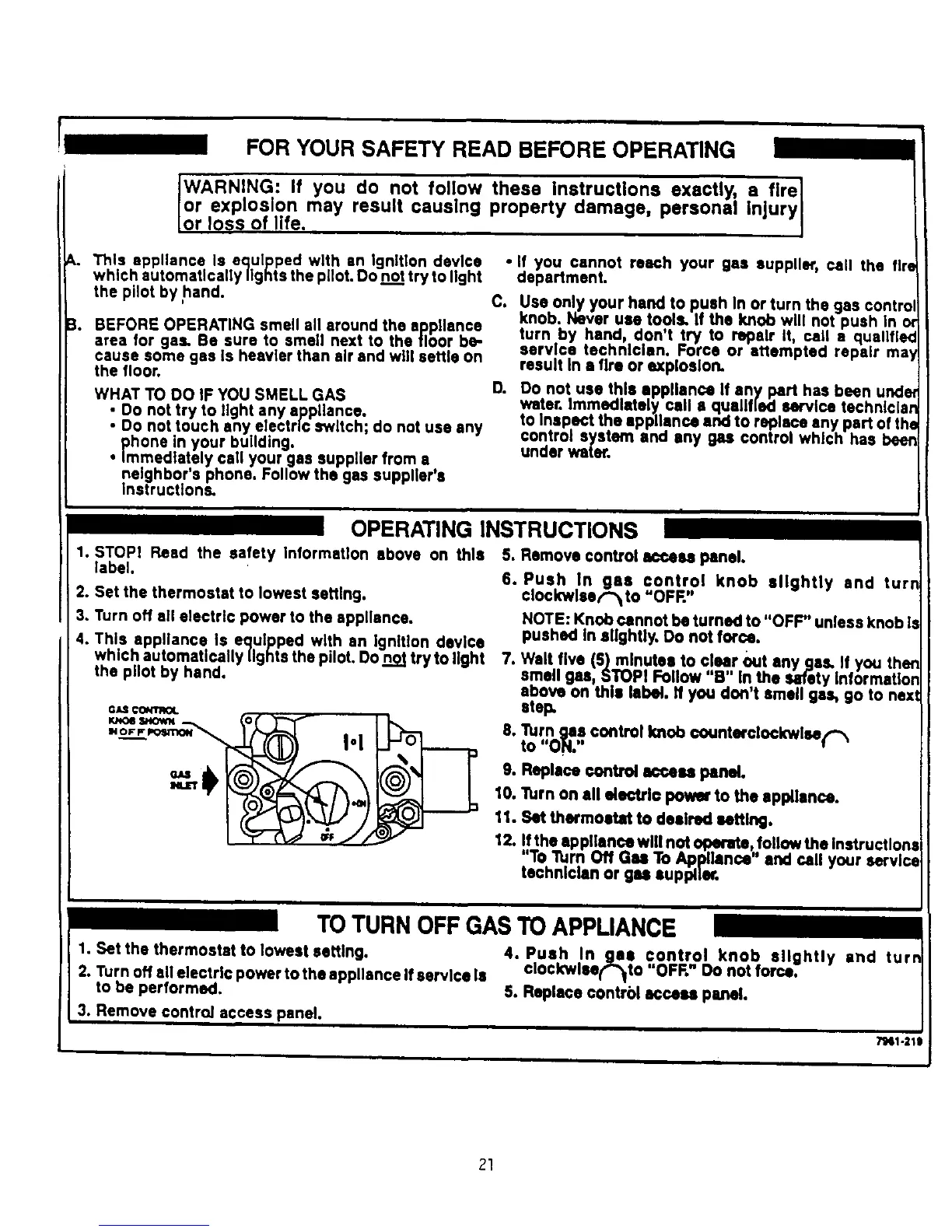 Bard CH060D36B - Before Operating; Operating Instructions; To Turn off Gas to Appliance