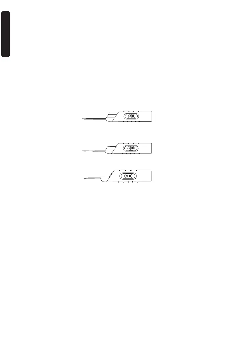 5. Αφαιρέστε τη βελόνα από τον ασθενή και τραβήξτε προς τα πίσω το άνω συρόμενο κουμπί για να αποσύρετε την κάνουλα και να